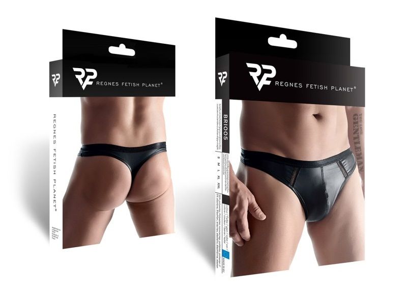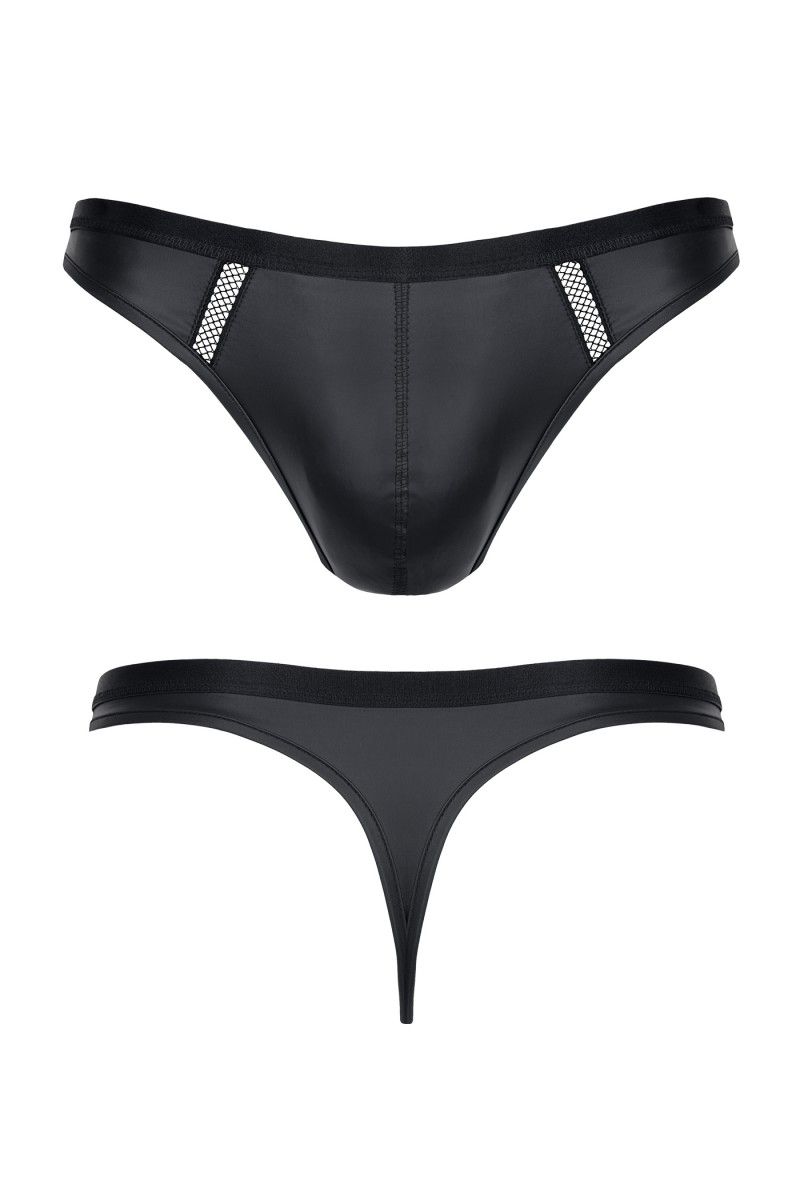 Мужские стринги в стиле wetlook с сетчатыми вставками