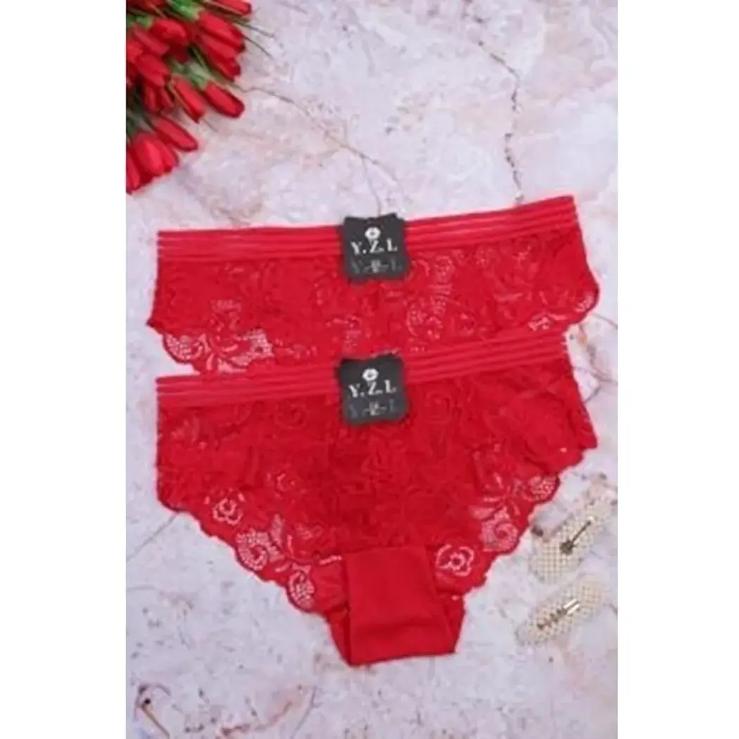 Трусы женские кружевные, цветочный узор, красные, размер 42-48, модель 211 Y.Z.L