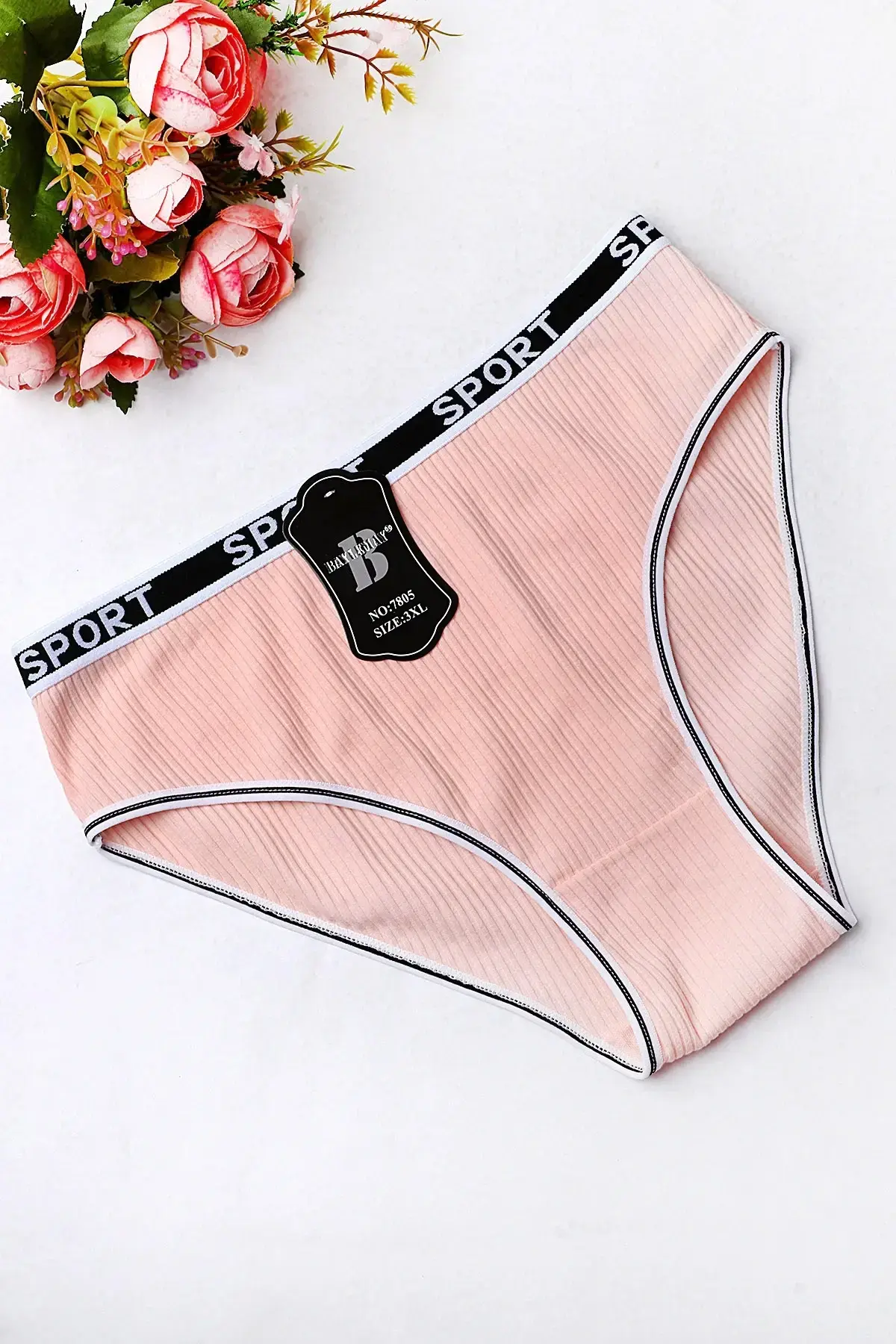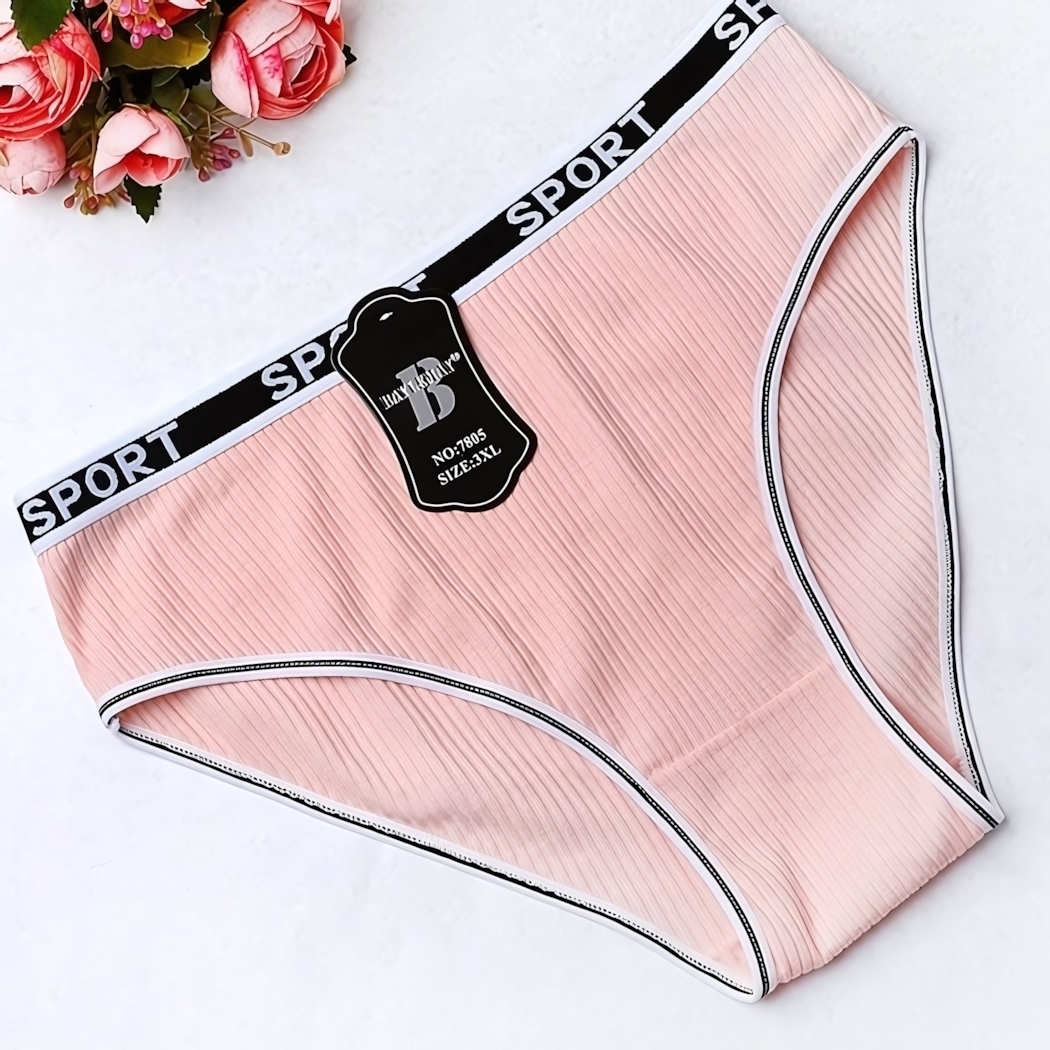 Эти трусы подходят для ежедневного ношения, занятий спортом или отдыха. Они имеют классическую форму с кружевной отделкой по краям и черной резинкой на поясе с надписью "SPORT", что добавляет им стильный акцент. Нежно-розовый цвет и рифленая текстура делают их не только удобными, но и привлекательными.