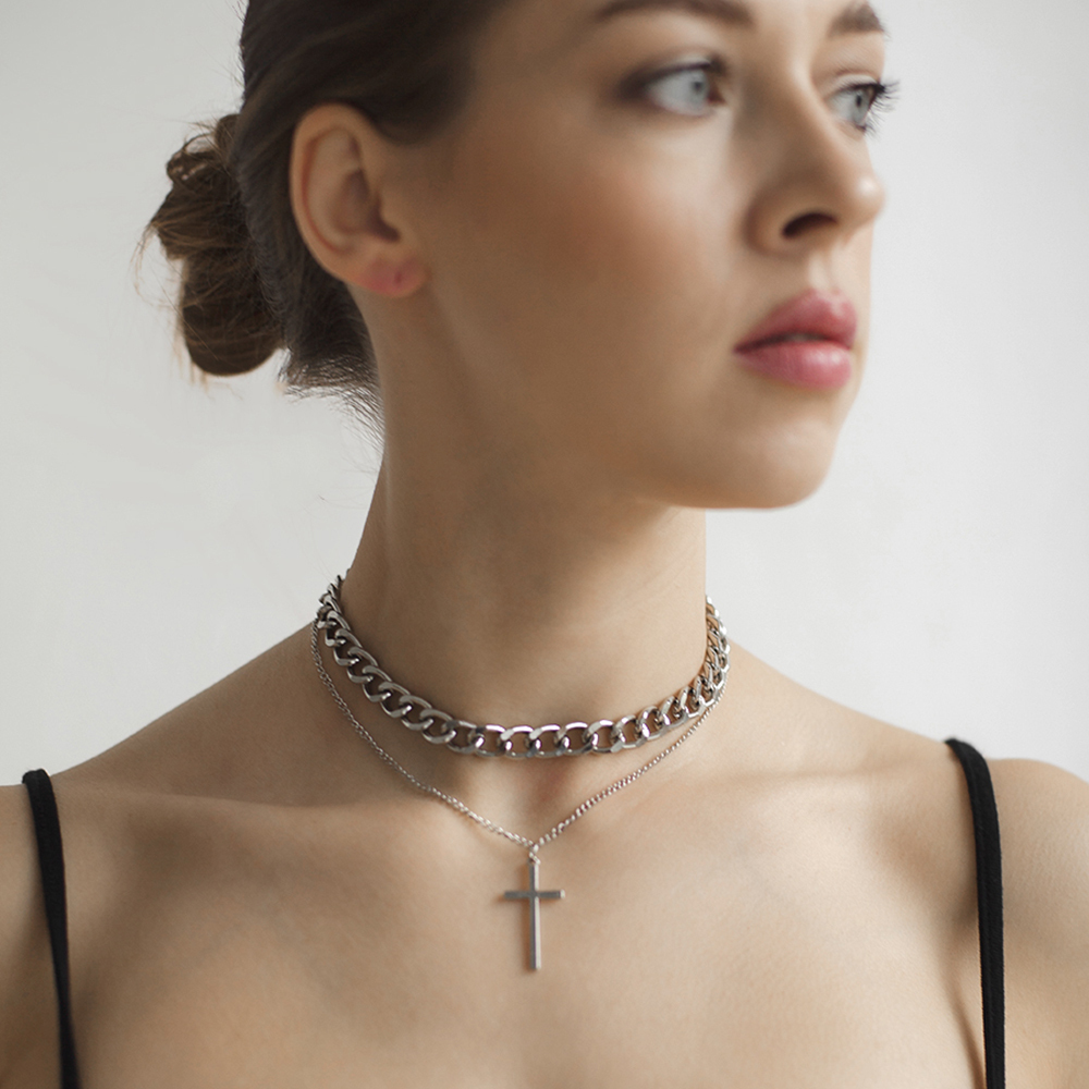 Комплект из двух серебристых цепочек с крестиком станет стильным акцентом в вашей коллекции бижутерии. Сочетание массивного ожерелья и изящной подвески создает идеальный баланс между роскошью и утонченностью.