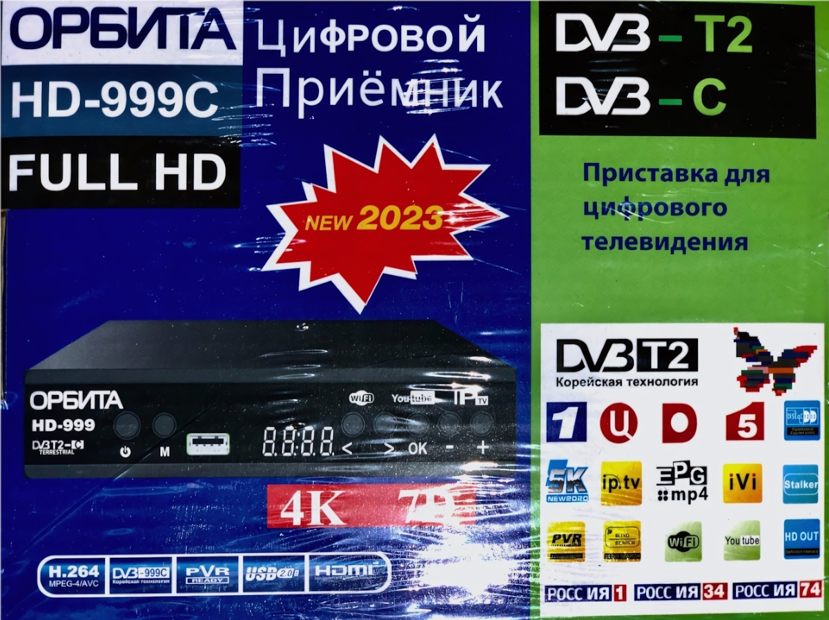 Цифровой ресивер 'Орбита HD-999C' обеспечивает доступ к цифровому телевидению с поддержкой разрешения Full HD и 4K. Благодаря встроенному Wi-Fi вы сможете наслаждаться контентом без лишних проводов.