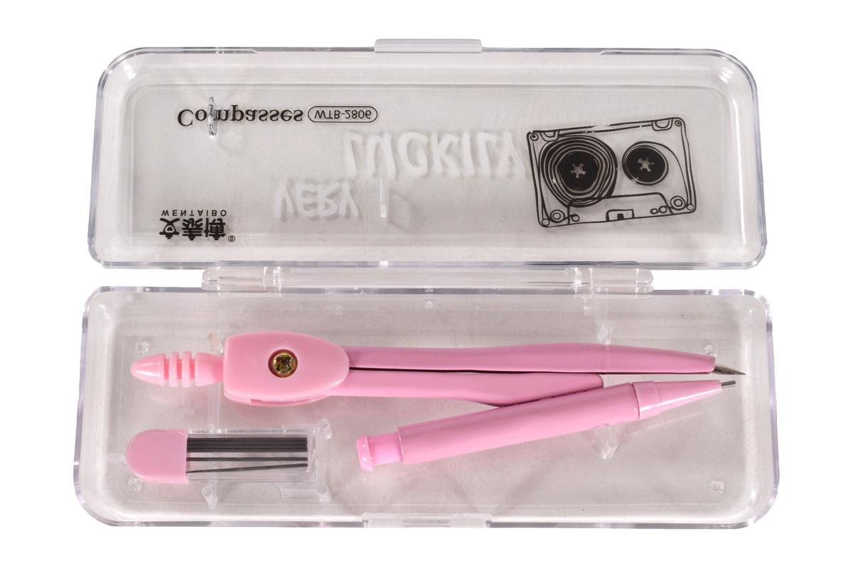 Циркуль-автомат с автоматическим грифелем, розовый, в пенале + 3 стержня, металл/пластик