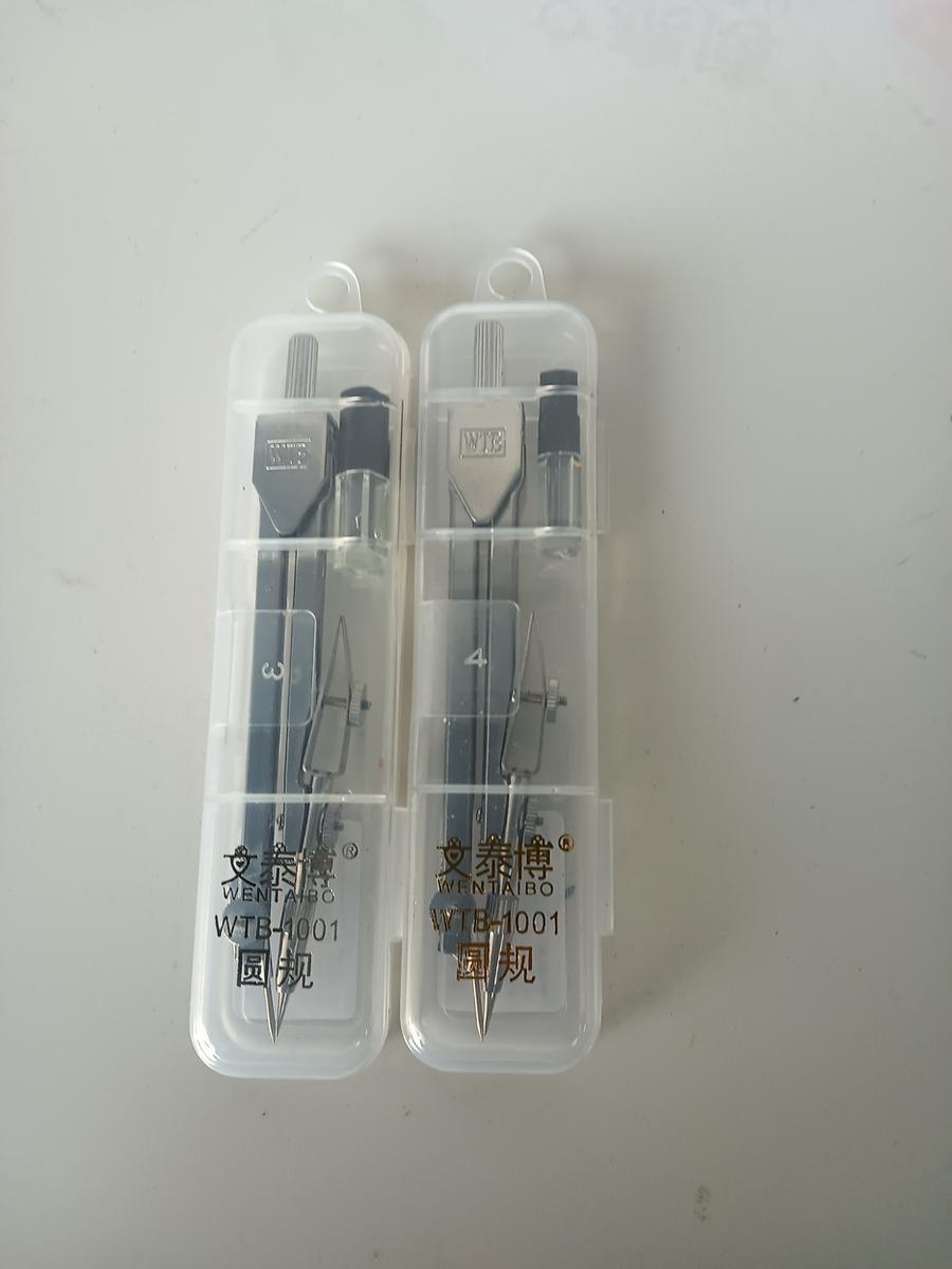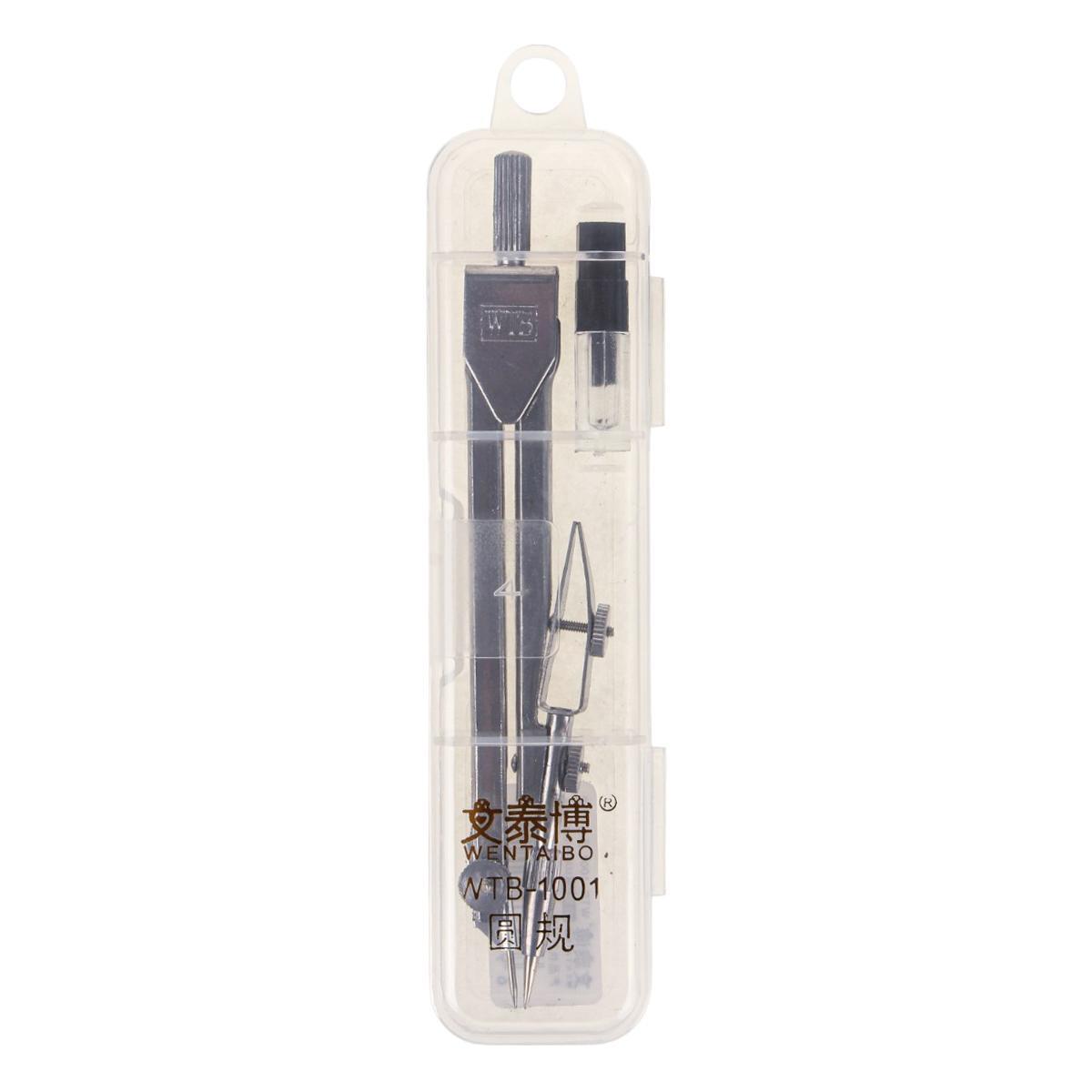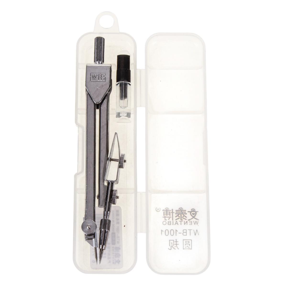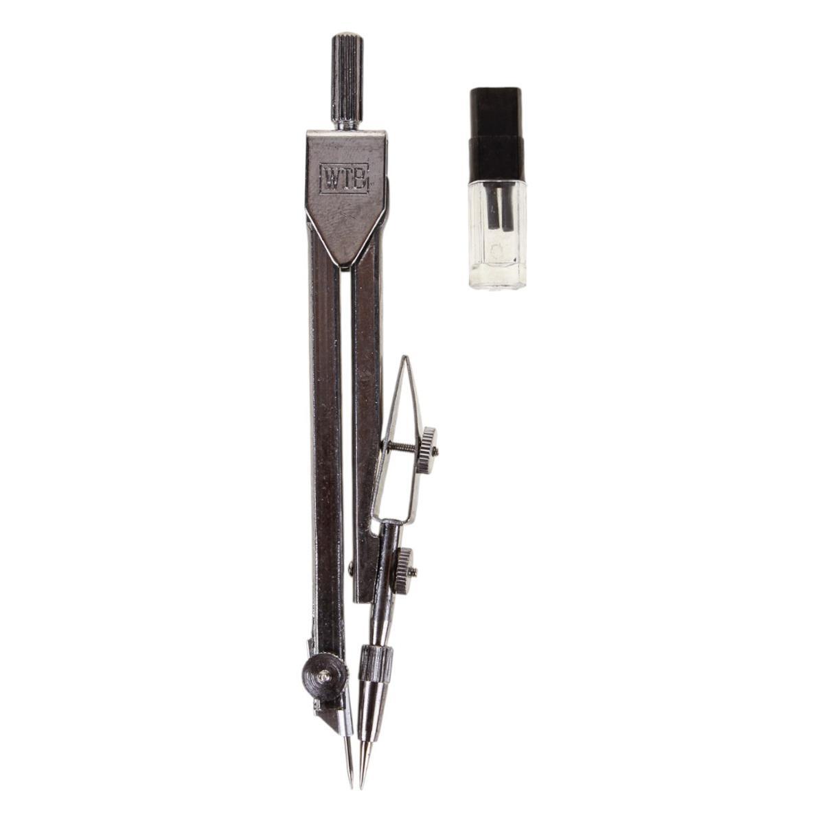 Циркуль металлический с запасными грифелями, в пластиковом футляре, для черчения и рисования