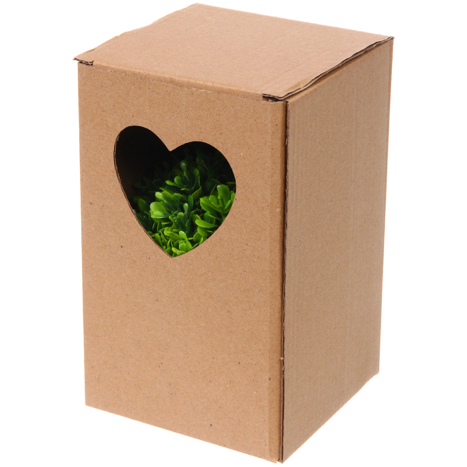 - Товар поставляется в индивидуальной подарочной упаковке из плотного коричневого картона с декоративным вырезом в форме сердца, через который видна зелень.