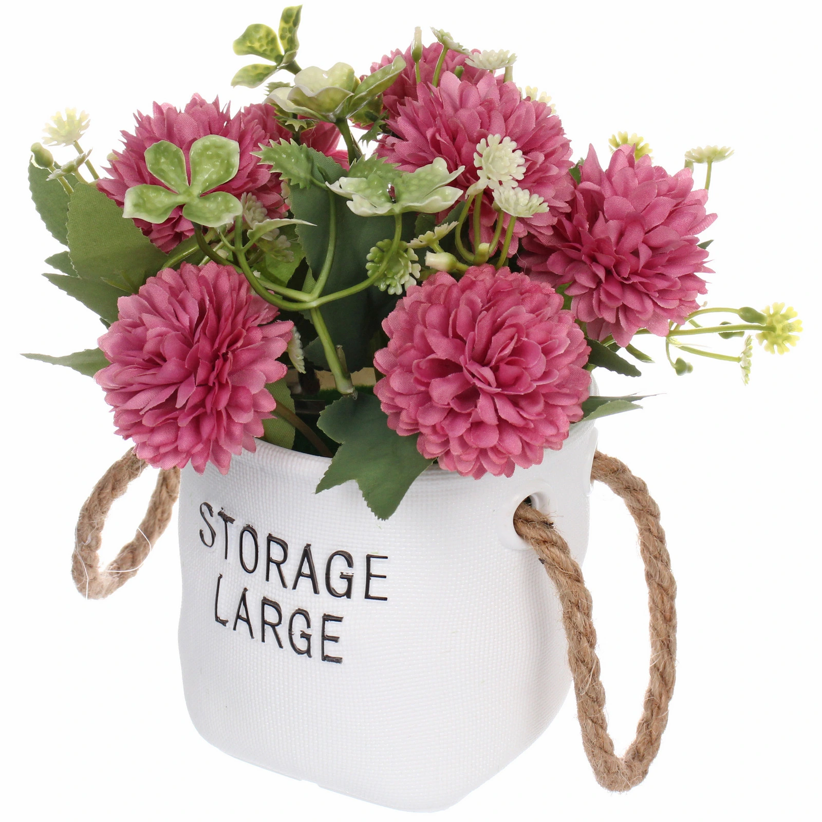 - Универсальность: Кашпо с надписью «STORAGE LARGE» и верёвочными ручками выполнено в современном стиле. Композиция гармонично впишется в гостиную, спальню, прихожую, офис или кафе.
