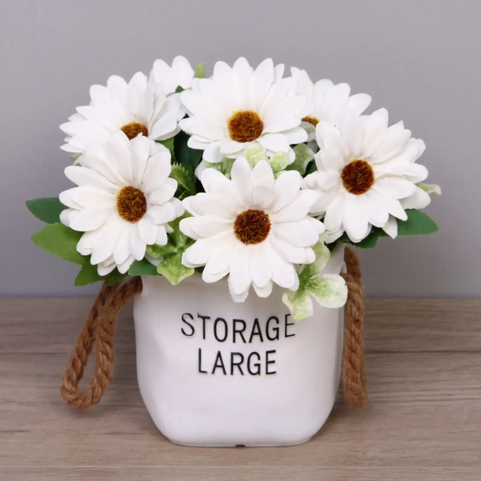 - Стильный дизайн: белая ваза с ручкой из веревки добавляет изысканности и оригинальности.