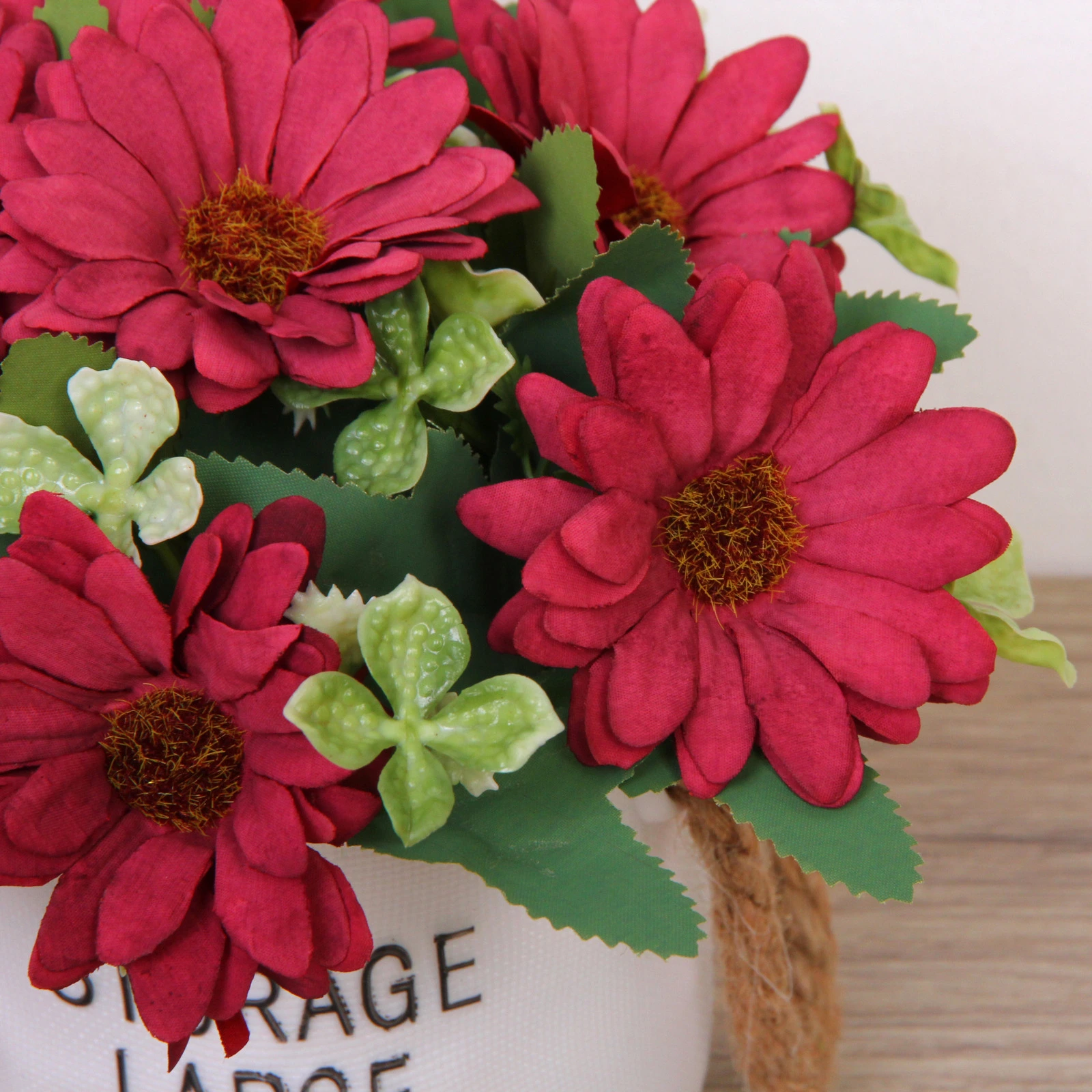 Создайте атмосферу тепла и гармонии в любом уголке вашего жилища с помощью этой изящной композиции. Искусственные бордовые ромашки в сочетании с зеленой листвой выглядят невероятно реалистично и сохраняют свою красоту круглый год, не требуя ни капли вашего внимания. Это идеальное решение для тех, кто ценит эстетику, но не имеет времени на уход за живыми растениями.