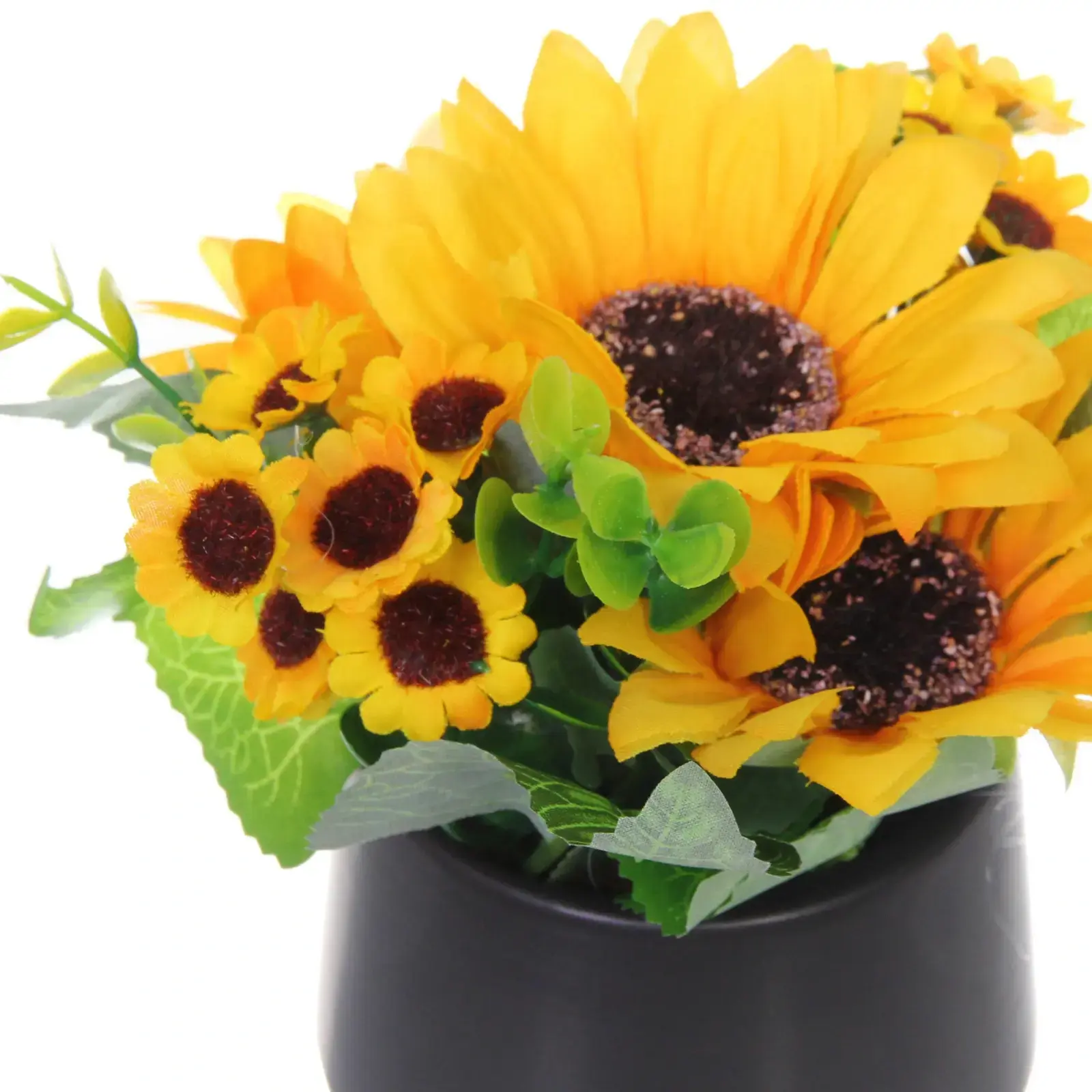 Эта великолепная цветочная композиция «Подсолнухи» станет идеальным дополнением вашего дома или офиса. Яркие желтые лепестки и насыщенные зеленые листья создают атмосферу тепла и уюта, а керамический горшок добавляет элегантности. Искусственные цветы не требуют ухода, что позволяет вам наслаждаться красотой без лишних хлопот.