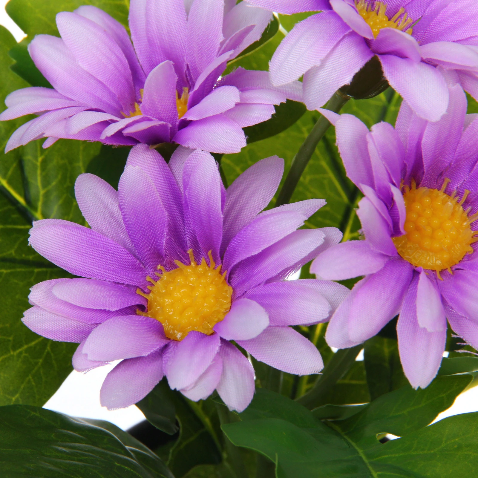Композиция изготовлена из высококачественных материалов — прочного полиэстера и надежного пластика. Благодаря этому лепестки и листья выглядят максимально естественно, сохраняя свою форму и насыщенный цвет на протяжении многих лет. В отличие от настоящих цветов, искусственная хризантема не вызывает аллергии и абсолютно безопасна для размещения в любых жилых зонах, включая спальни и детские комнаты.