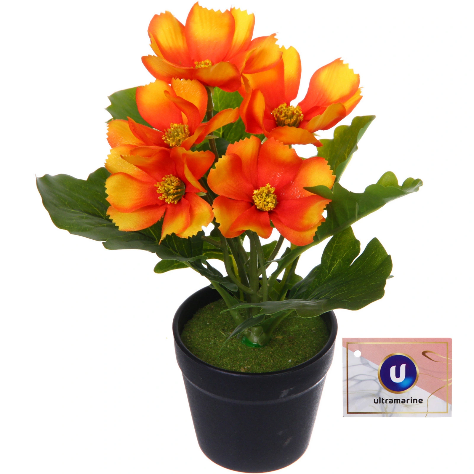 Эта яркая цветочная композиция подарит вашему дому атмосферу тепла и уюта, не требуя ни капли внимания. Идеально подходит для тех, кто ценит красоту природы, но не имеет времени на уход за живыми растениями. Оранжевые цветы с солнечными переливами и реалистичными деталями будут радовать глаз круглый год.