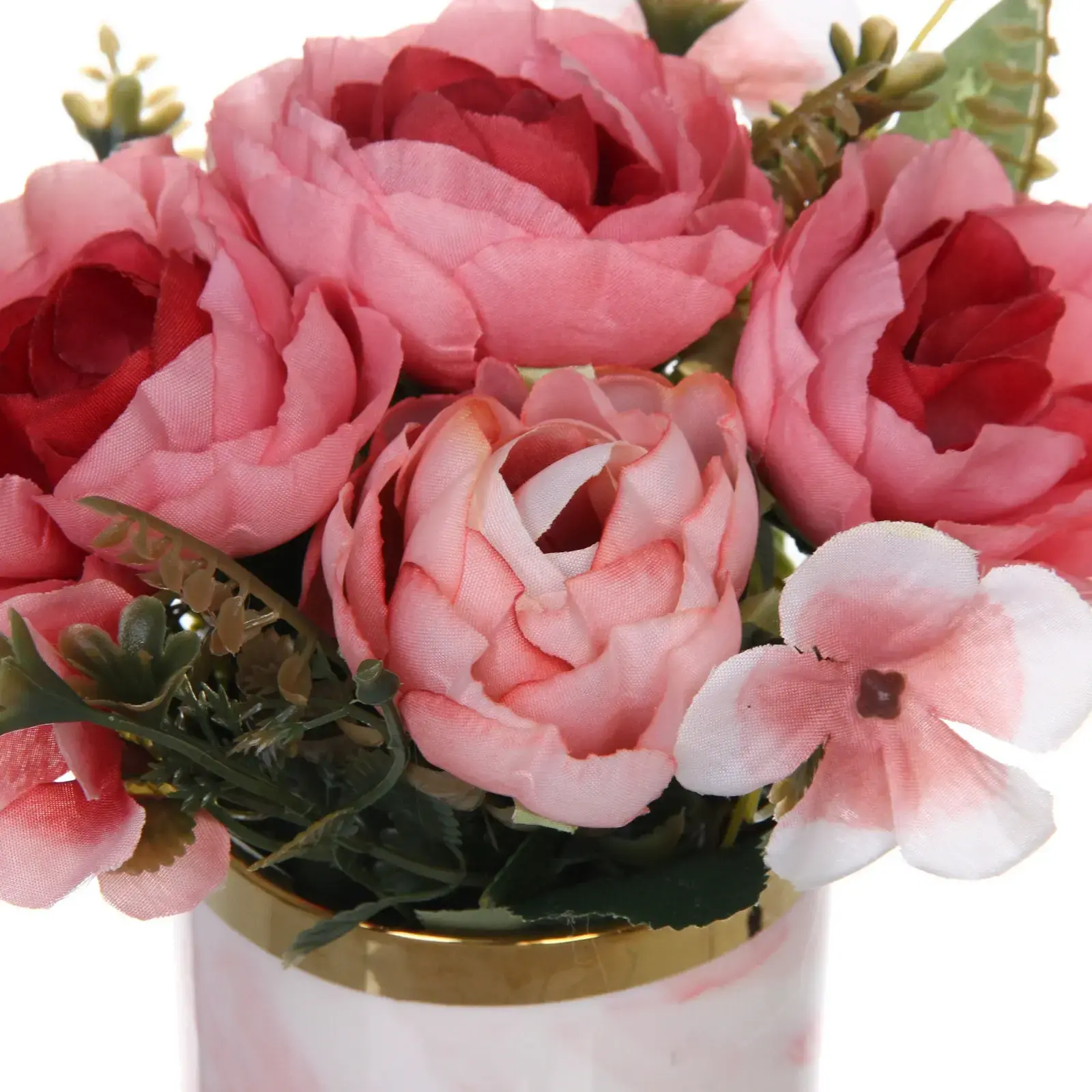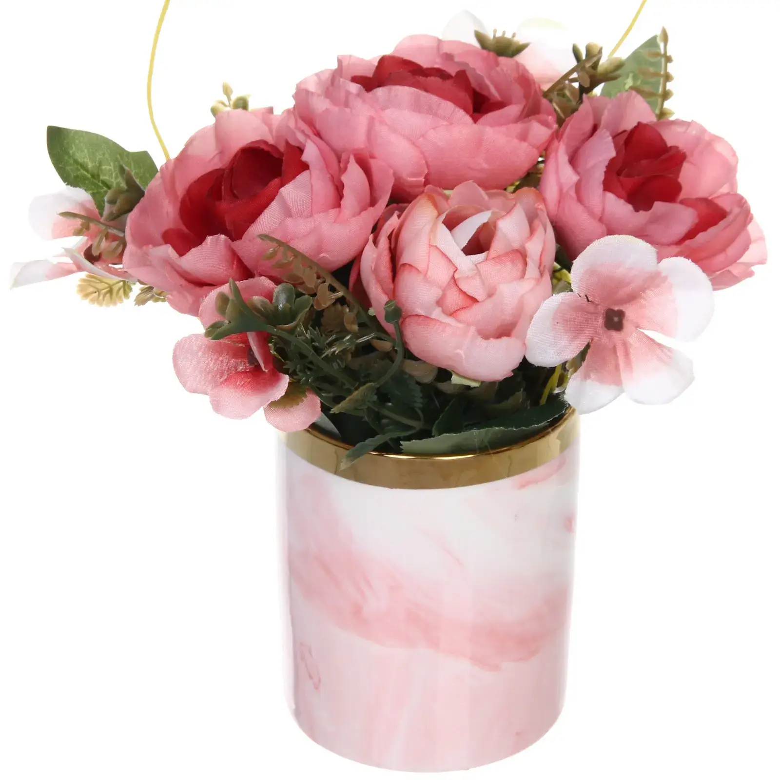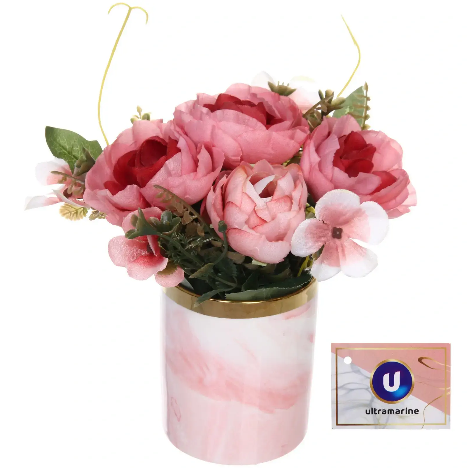 Эта ярко-розовая цветочная композиция «Шарм» станет настоящим акцентом в вашем доме. Она создана для тех, кто ценит красоту и уют, а также хочет добавить в своё пространство нотки свежести и радости. Искусственные цветы, собранные в стильной керамической вазе, выглядят так реалистично, что их трудно отличить от настоящих. Композиция идеально подходит для декорирования столов, полок или подоконников, создавая атмосферу тепла и уюта.