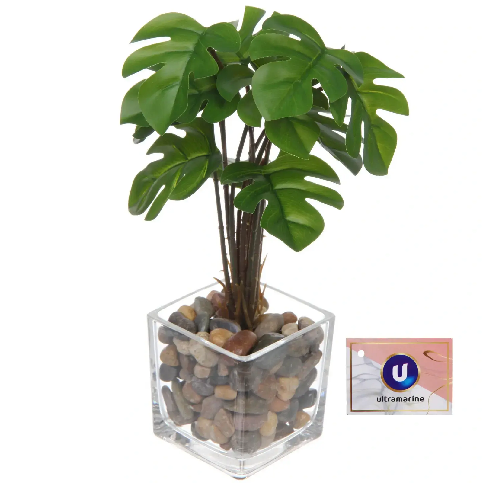 Цветочная композиция в стеклянном горшке «Монстера» — это идеальное решение для создания уюта и стиля в вашем интерьере. Искусственные листья монстеры, выполненные из качественного пластика, выглядят максимально естественно и добавляют яркие акценты в любое помещение. Эта композиция станет отличным выбором для тех, кто ценит красоту, но не хочет тратить время на уход за живыми растениями.