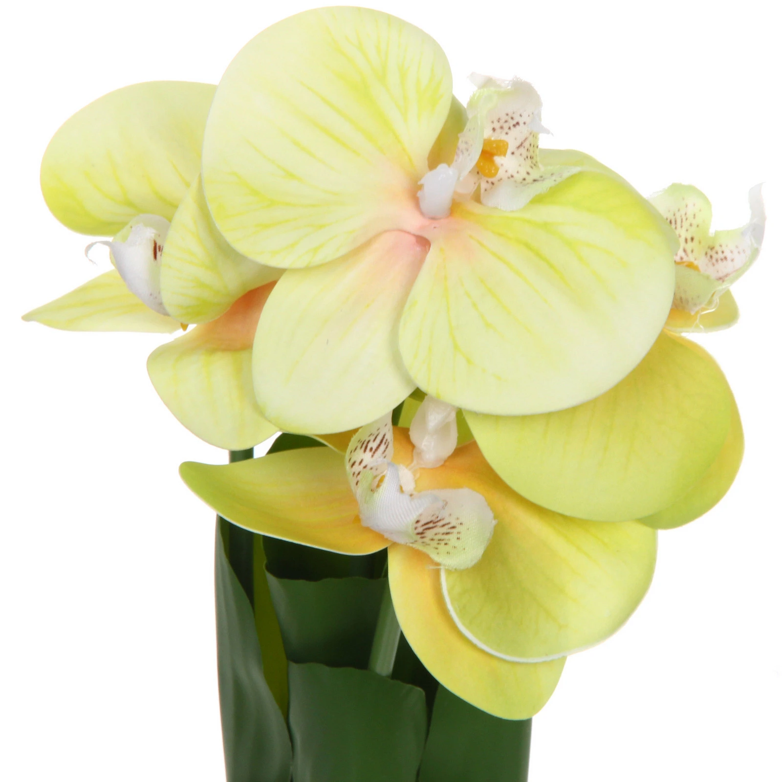Эта орхидея станет универсальным акцентом в любом помещении. Она идеально впишется в гостиную на журнальном столике или каминной полке, украсит обеденную зону на кухне, создаст уютную атмосферу в спальне или добавит элегантности в оформление офиса. Благодаря компактным размерам (19х27 см) она не займет много места, но обязательно привлечет внимание гостей и домочадцев.