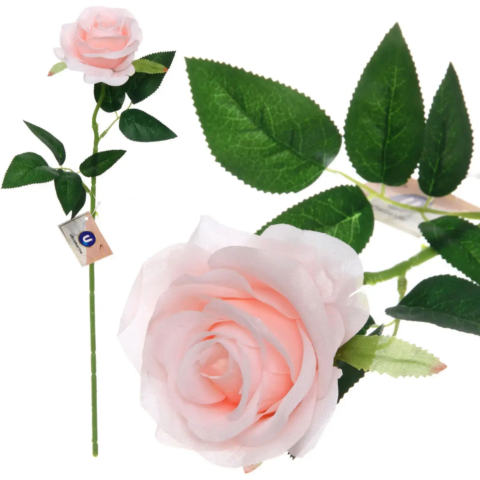 Искусственная роза 50см, нежно-розовая, материал полиэстер/пластик