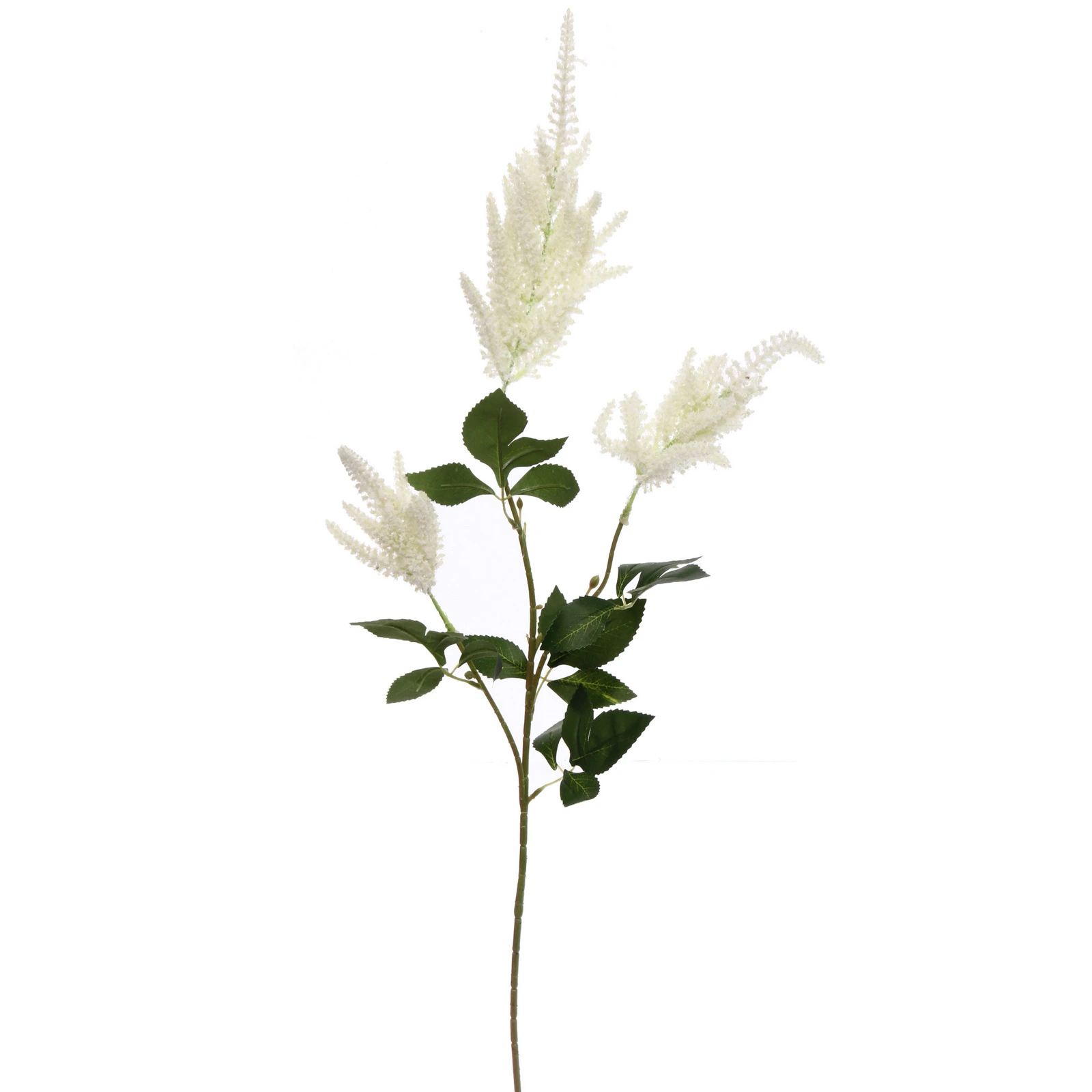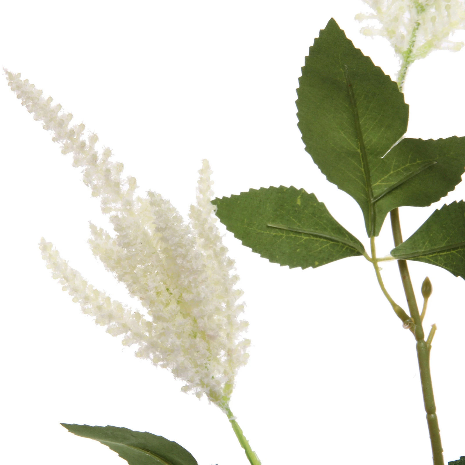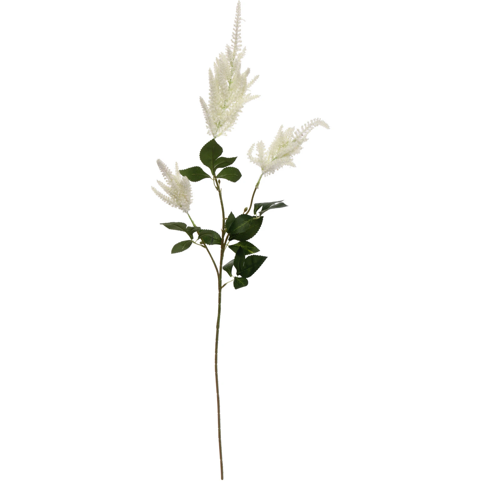 Высота изделия — 100 см, что позволяет использовать его в напольных и настольных вазах. Материал изготовления — пластик, обеспечивающий легкость и сохранение формы. Белые конусообразные соцветия и зеленые листья с зубчатыми краями создают гармоничный, аккуратный образ, который легко впишется в современный и классический интерьер.