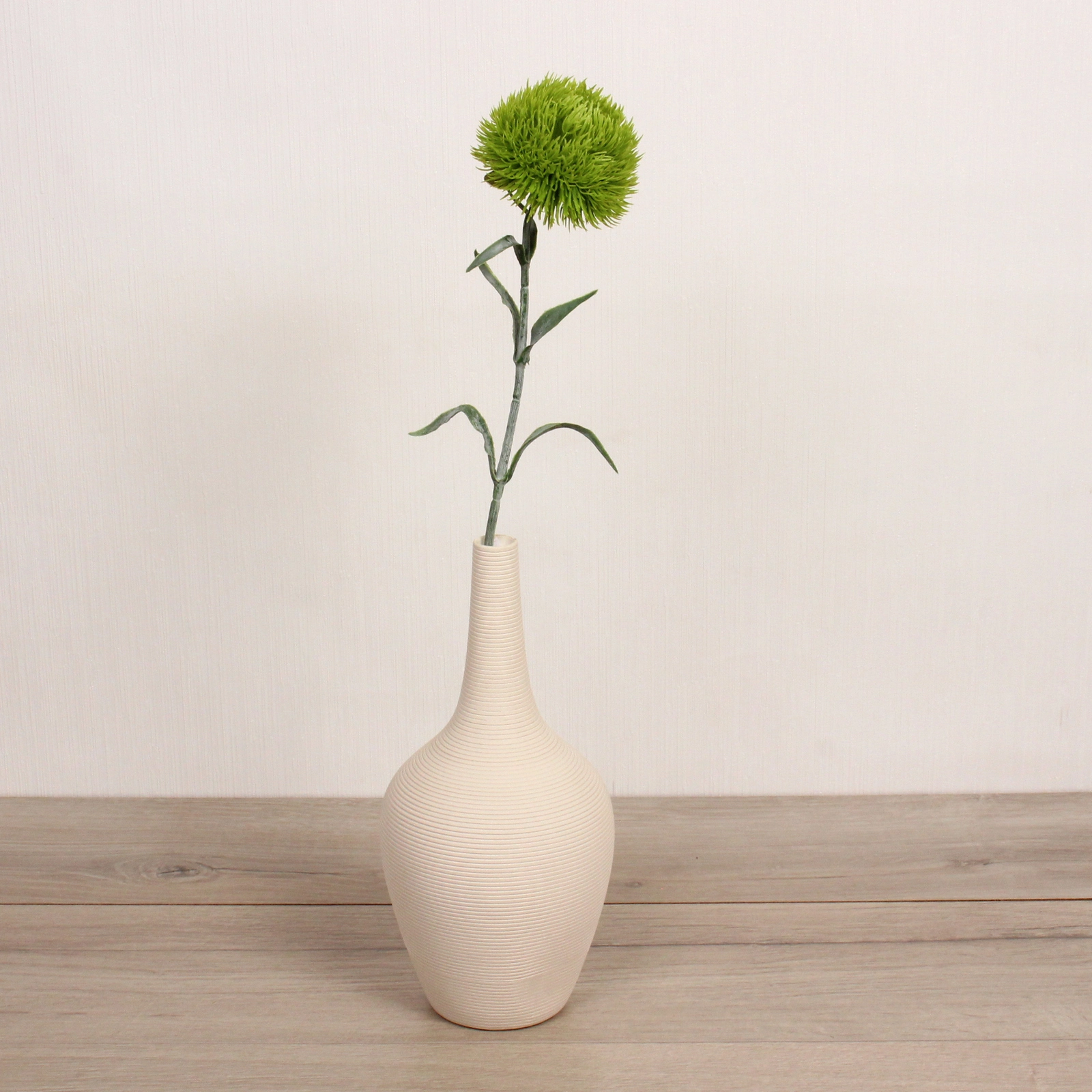 Вы можете использовать Кариофиллум как самостоятельный элемент декора, поставив его в узкую высокую вазу, или сделать его частью большой флористической композиции. Длинный прямой стебель с характерной матовой текстурой и узкие темно-зеленые листья подчеркивают натуральность изделия. Благородный зеленый цвет соцветия отлично сочетается с другими декоративными элементами, создавая гармоничный ансамбль.
