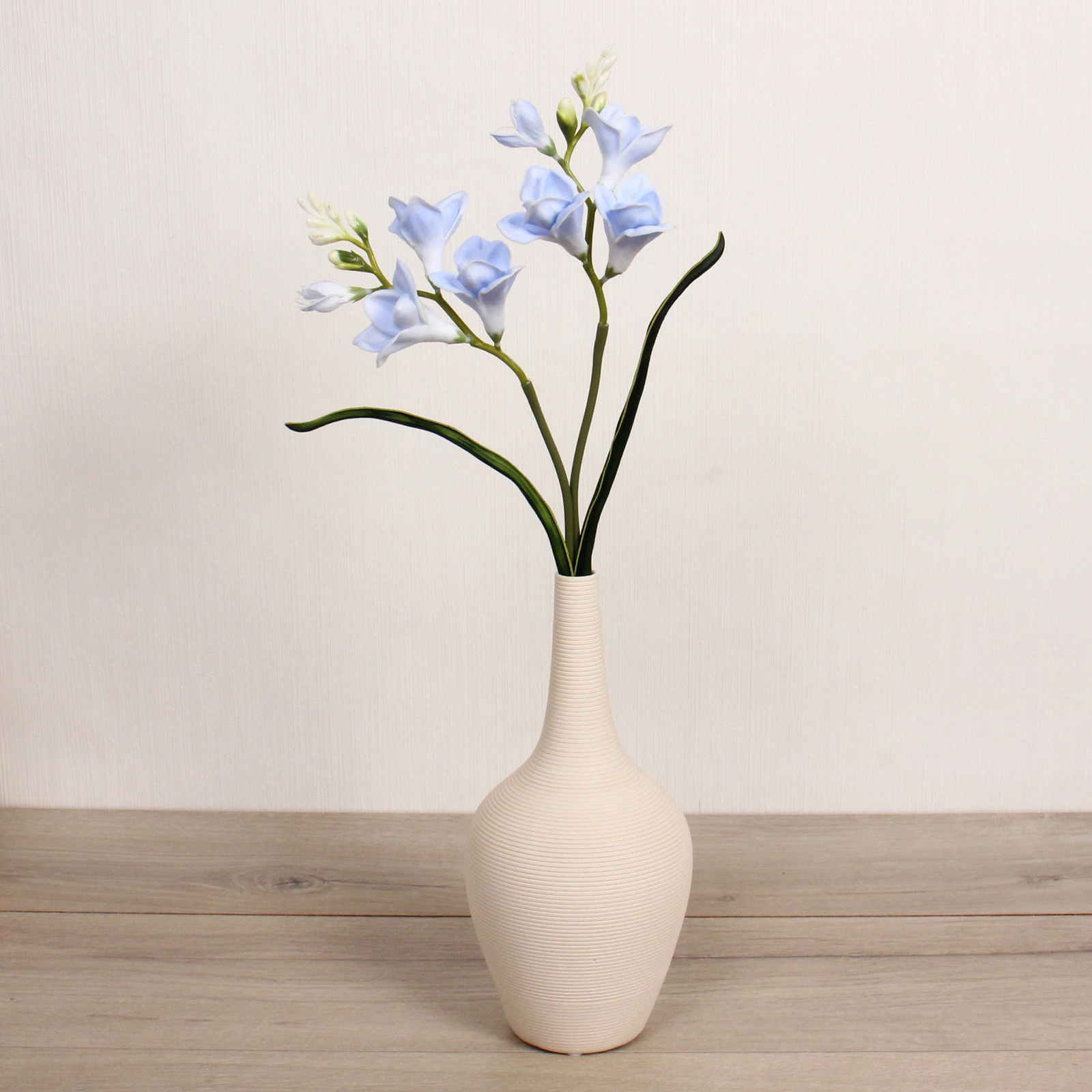 Искусственная орхидея «Natur» — это простой способ добавить в пространство ощущение свежести и уюта без лишнего ухода. Нежные голубые цветы с детально проработанными лепестками выглядят естественно и гармонично вписываются в современный интерьер. Такой декор сохраняет аккуратный внешний вид круглый год и не требует полива или специального освещения.
