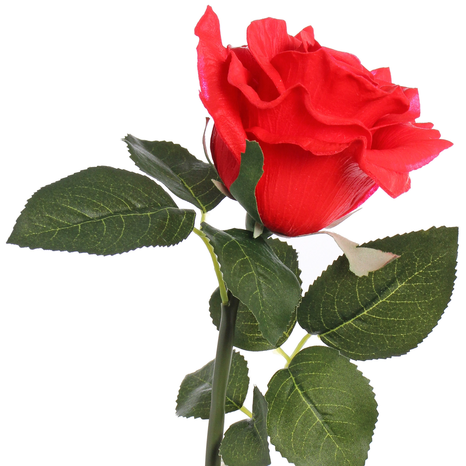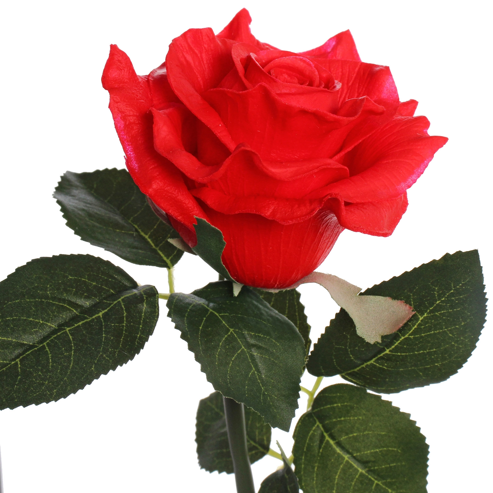 - Невероятная реалистичность: каждый лепесток, стебель и лист искусно воспроизведен с учетом природных особенностей настоящей розы. Волнистые края лепестков, фактурные прожилки и естественные изгибы создают полную иллюзию живого цветка.