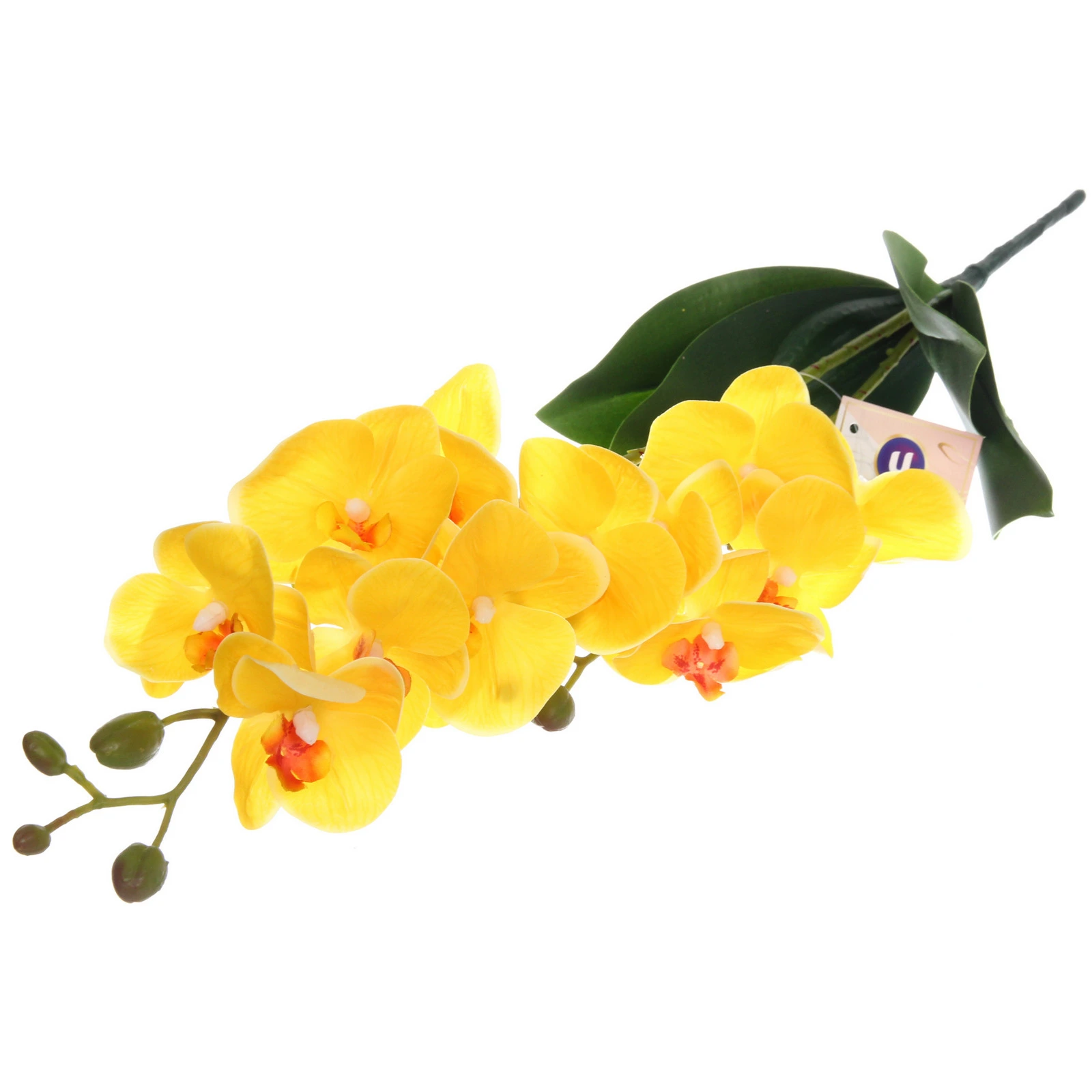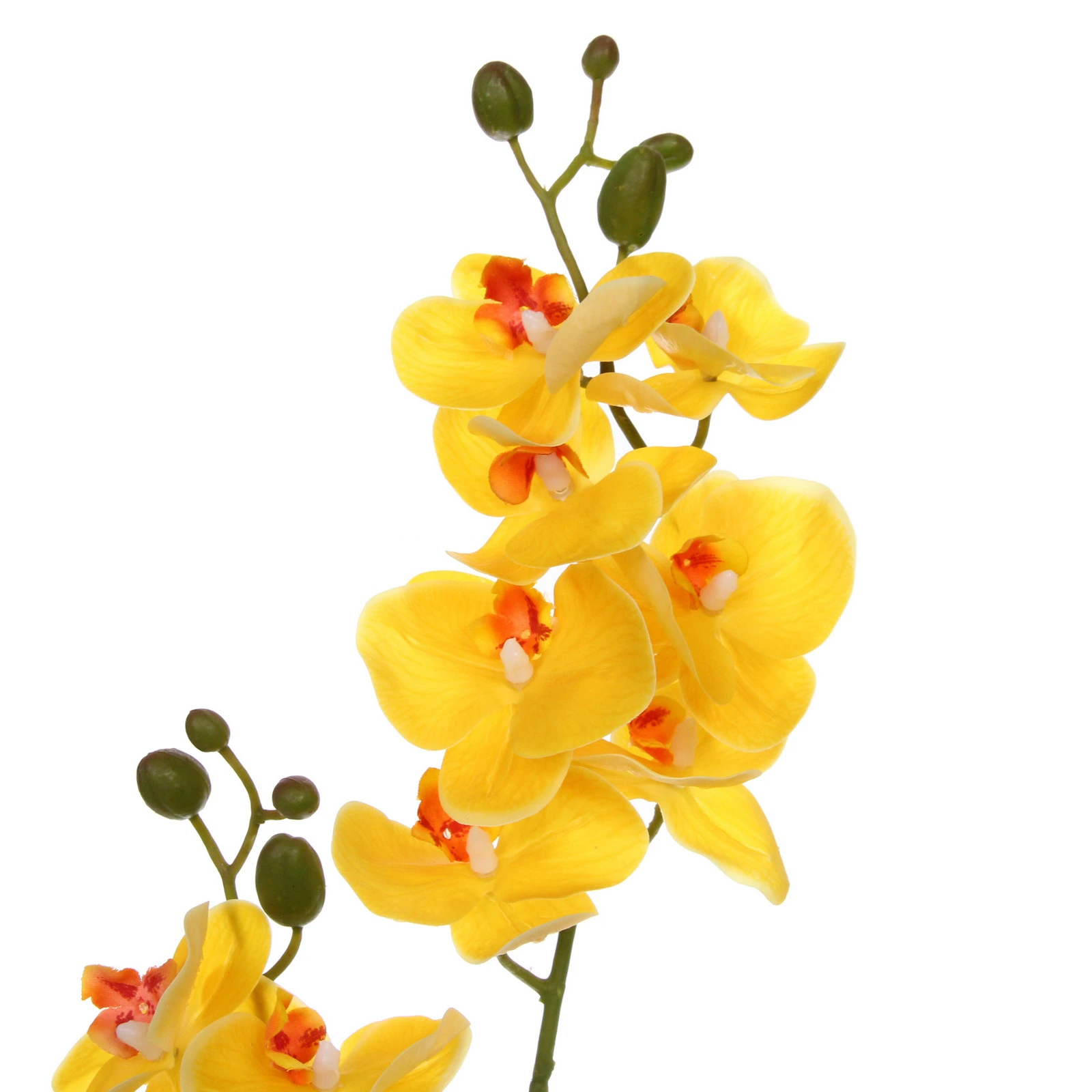 Подарите своему интерьеру нотку изысканности и уюта с этой невероятно реалистичной желтой орхидеей. Она станет идеальным решением для тех, кто ценит эстетику, но не хочет тратить время на уход за живыми растениями. Эта ветка с яркими цветами и бутонами сохранит свой безупречный вид годами, радуя вас своим солнечным цветением в любое время года.