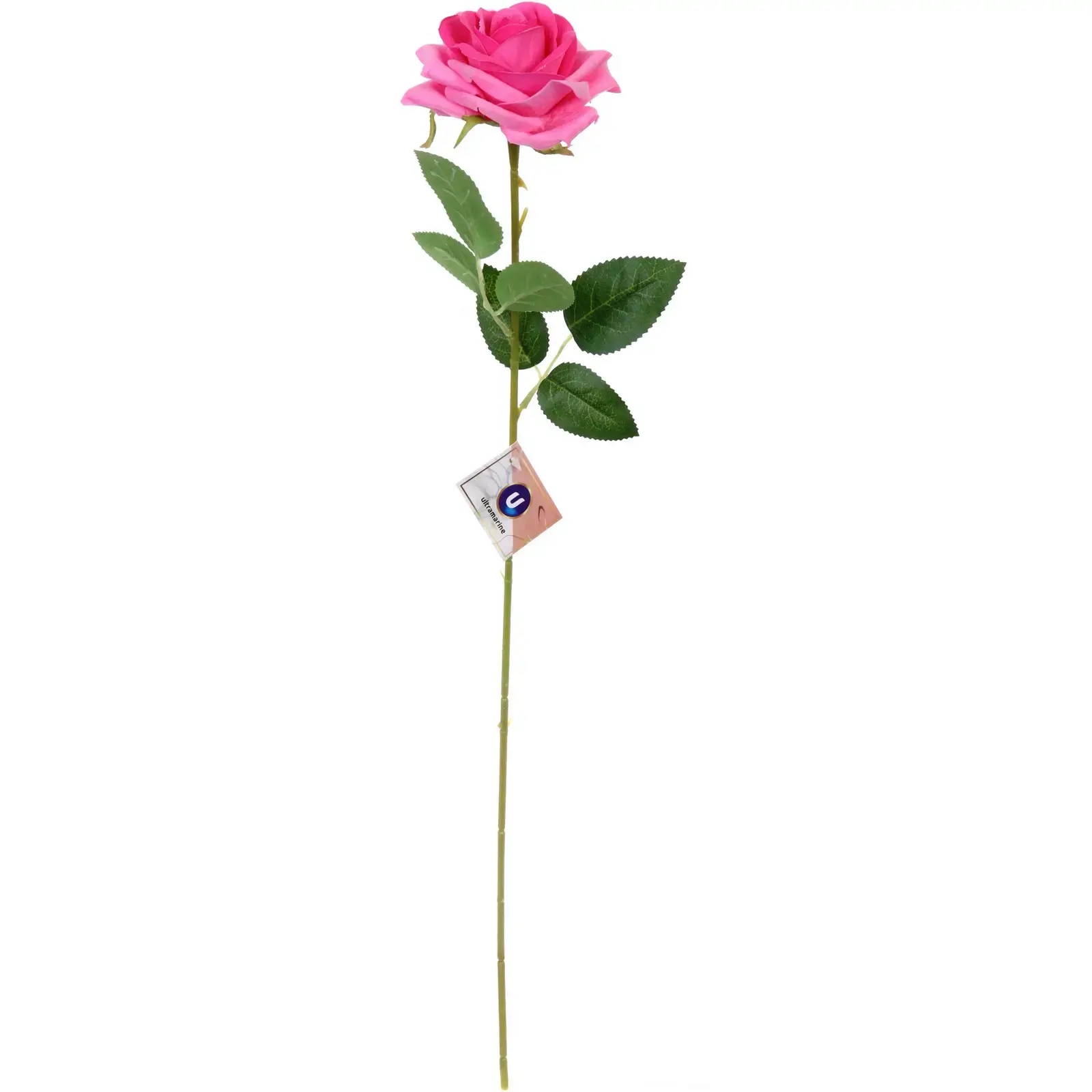 Роза выполнена из пластика и полиэстера, что обеспечивает её долговечность и устойчивость к внешним воздействиям. Ярко-розовый цвет лепестков и зелёные листья придают ей естественный вид, а многослойная структура лепестков создает объемный эффект. Искусственная роза «Natur» станет отличным дополнением к вашему интерьеру и подарит вам радость и позитивные эмоции на долгое время.