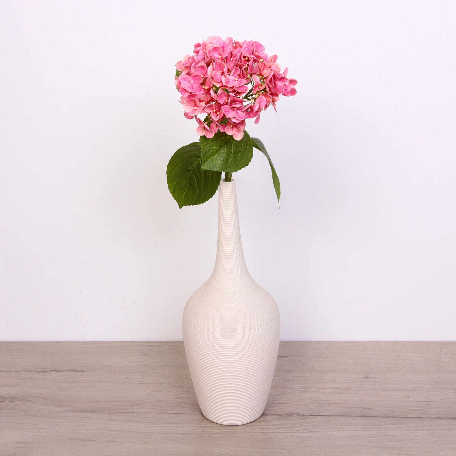 Эта гортензия станет универсальным акцентом в любом интерьере. Поставьте её в высокую напольную вазу в гостиной, создайте элегантную композицию на обеденном столе или украсьте прикроватную тумбочку. Благодаря нейтральной светлой вазе, которая гармонично сочетается с растением, декор легко впишется в скандинавский, прованс, современный или классический стиль. Вы можете без опасений переставлять её с места на место или перевозить – цветок не сломается и не помнётся.