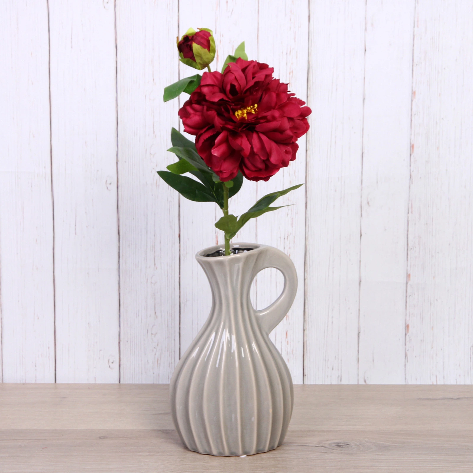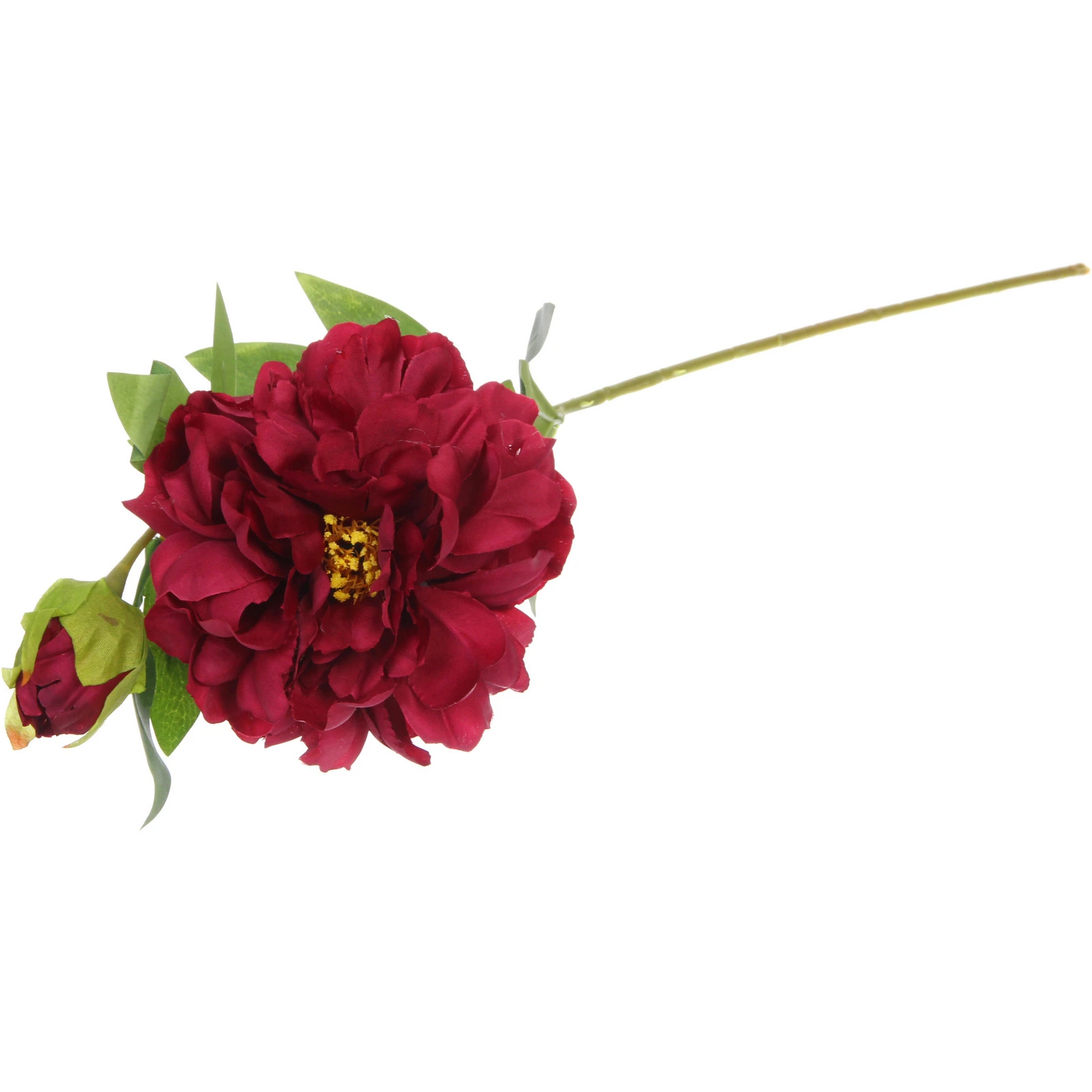 Искусственный пион насыщенного бордового цвета — это элегантное и долговечное украшение для вашего дома, которое будет радовать глаз круглый год. Он идеально подходит для создания уютной атмосферы в гостиной, спальне или для оформления праздничного стола, не требуя при этом никакого ухода.