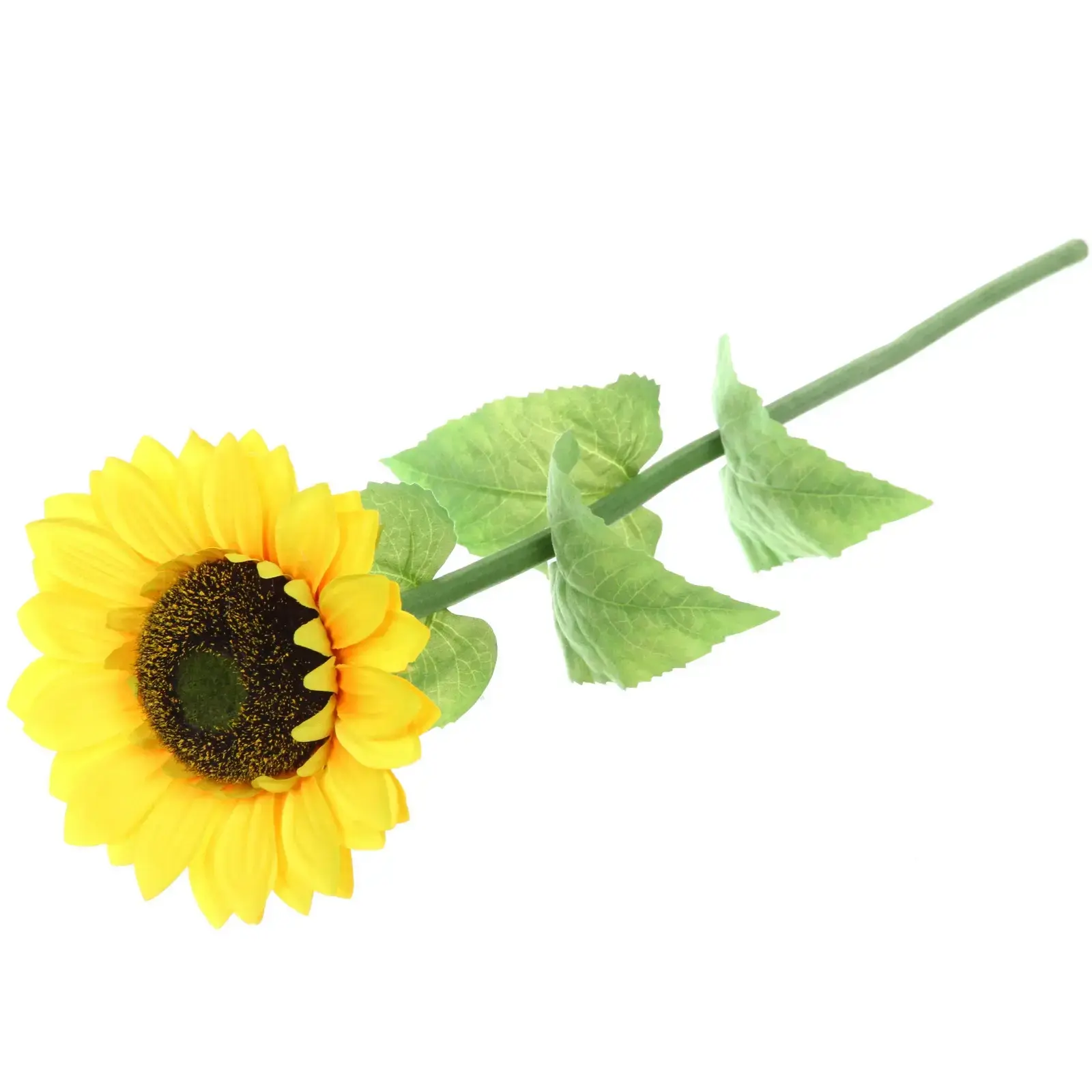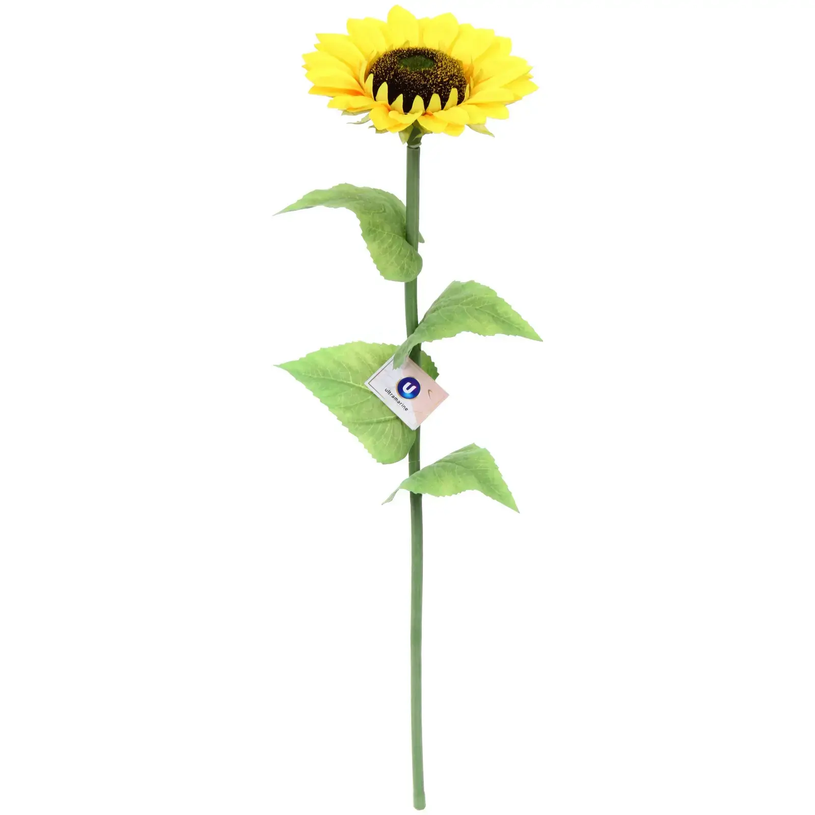 Цветок имеет ярко-желтые лепестки с коричневой сердцевиной и зеленый стебель с текстурированными листьями, что придает ему естественный вид. Высота цветка составляет 68 см, что делает его заметным элементом декора. Используйте его в букетах, как часть композиции или просто как самостоятельный элемент, чтобы добавить яркости и жизни в ваше пространство.