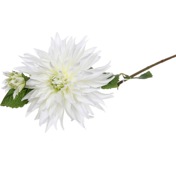 Цветок изготовлен из высококачественного пластика и полиэстера, что обеспечивает его долговечность и устойчивость к внешним воздействиям. Длина стебля составляет 72 см, что позволяет легко интегрировать его в любой интерьер. Белый цвет с легким кремовым оттенком добавляет элегантности и свежести, а зелёные листья придают натуральный вид.