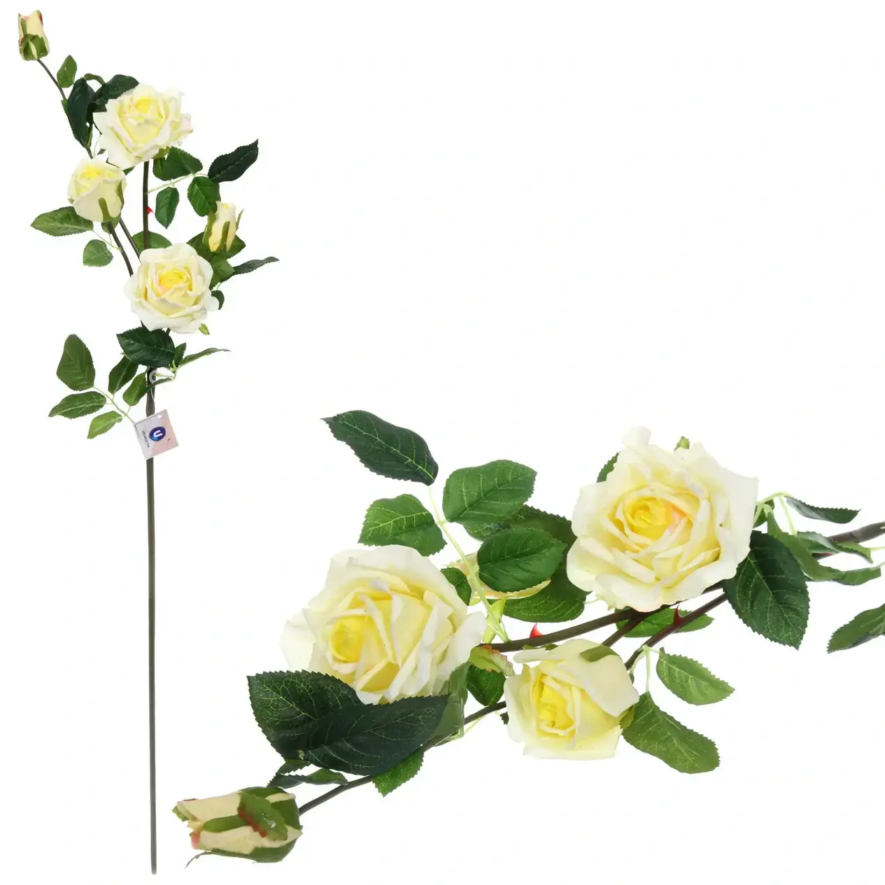 Цветок выполнен из высококачественных материалов: пластика и полиэстера, что обеспечивает его долговечность и устойчивость к внешним воздействиям. Светло-желтый оттенок лепестков и зеленые листья придают ему естественный вид. Высота цветка составляет 95 см, что делает его заметным элементом декора. Используйте его для создания стильных композиций или как акцент в интерьере.