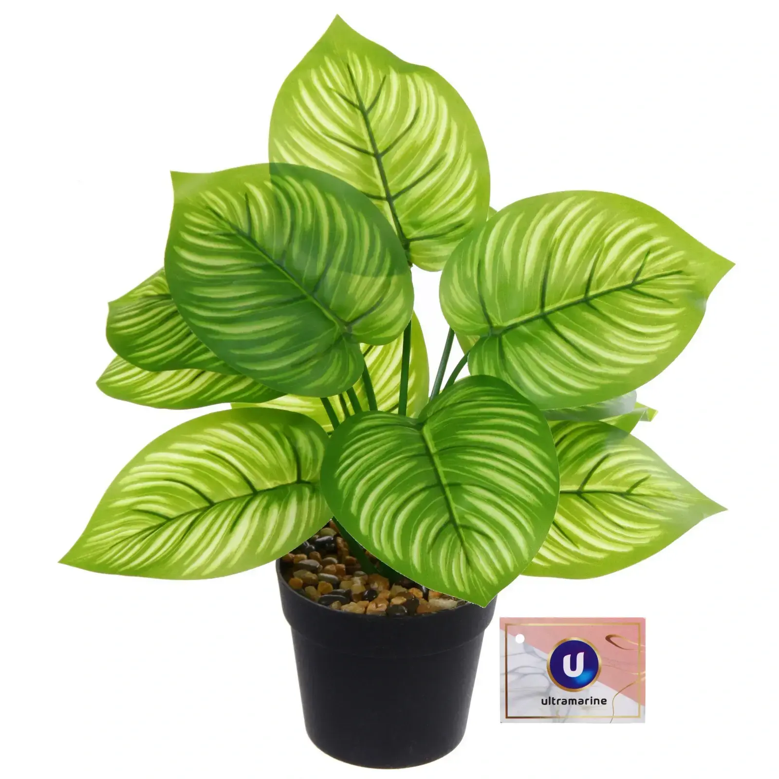 Искусственное растение «Калатея» в горшке, 26 см, пластик, декоративные камушки, вечнозеленый декор