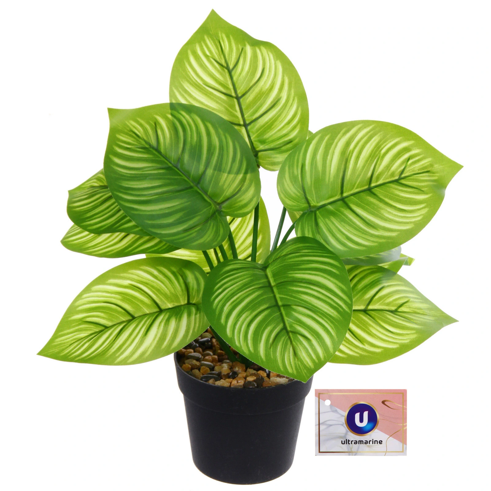 Декоративное растение в горшке с натуралистичными листьями и каменистым наполнителем создаст уютную атмосферу в любом помещении. Идеальное решение для тех, кто ценит эстетику, но не имеет времени или условий для ухода за живыми цветами.