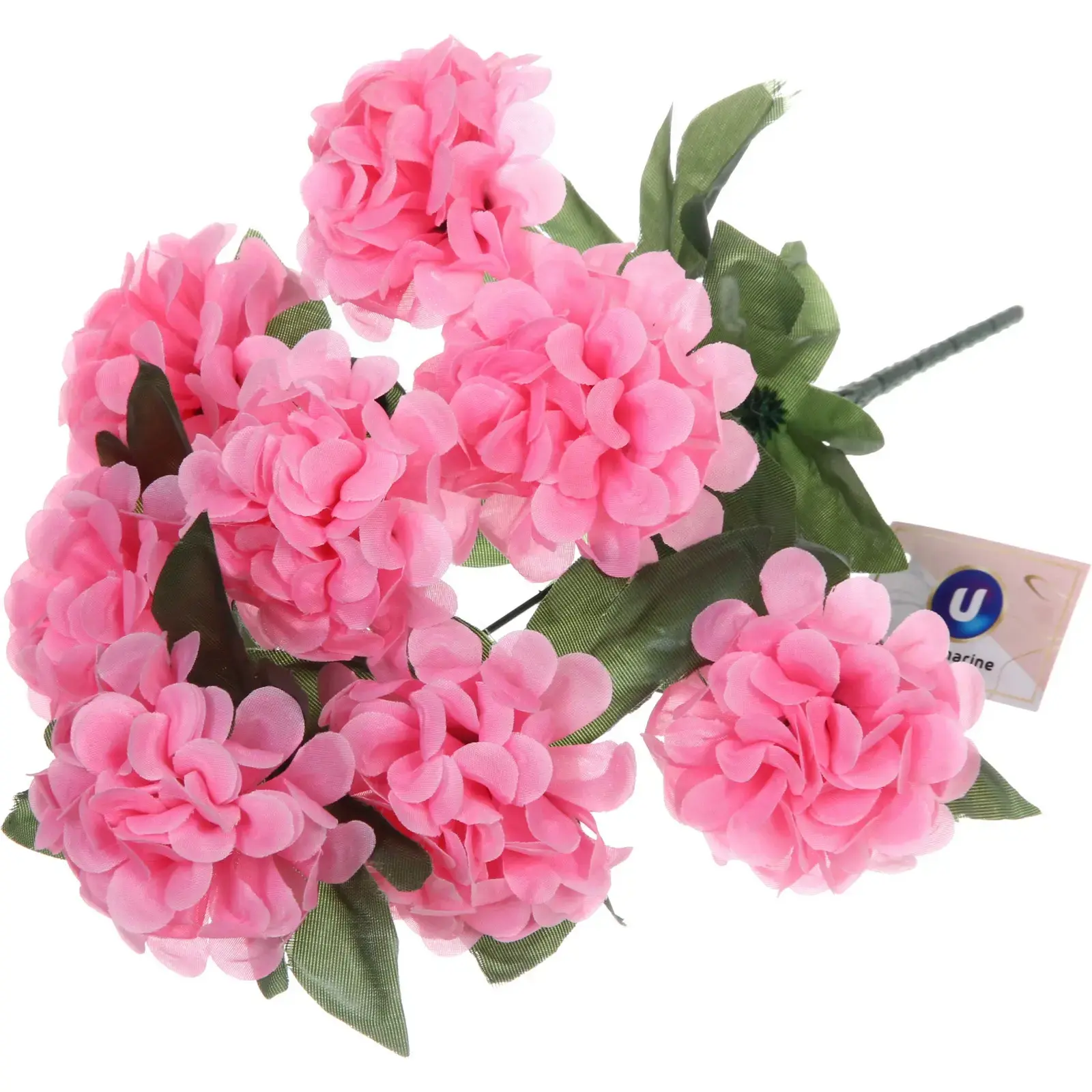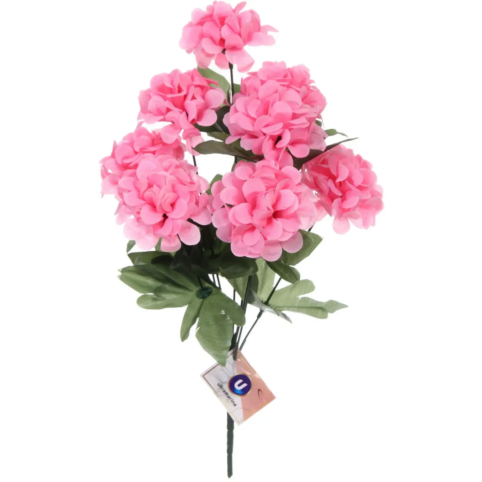 Каждый букет состоит из 9 розовых цветков, высота которых составляет 30 см. Цветы выполнены из качественного пластика и полиэстера, что обеспечивает их долговечность и устойчивость к внешним воздействиям. Листья имеют темно-зеленый цвет и гладкую текстуру, что добавляет реалистичности. Стебли гибкие и легко поддаются формированию, что позволяет вам создавать желаемую композицию.