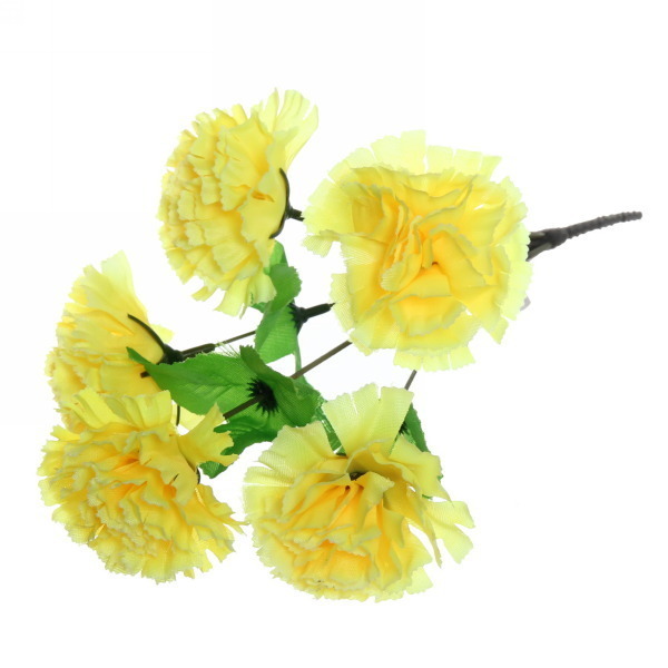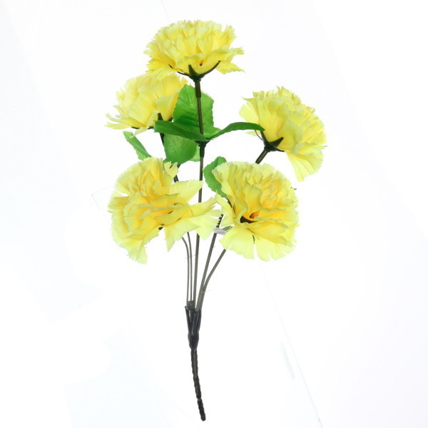 Искусственный букет гвоздики высотой 31 см с шестью яркими желтыми цветками станет отличным украшением вашего дома или офиса. Он не только добавит ярких красок в ваше пространство, но и создаст атмосферу уюта и тепла. Благодаря высококачественным материалам, из которых изготовлены цветы, они выглядят очень естественно и не требуют особого ухода.