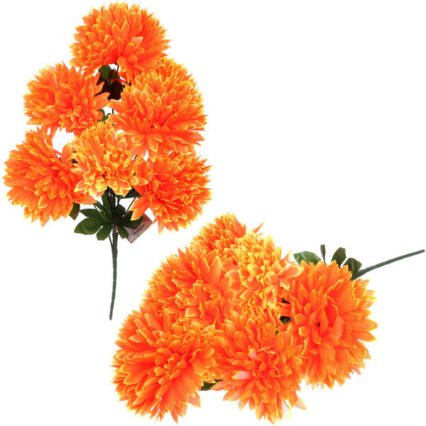Искусственные цветы «Хризантемы» высотой 50 см с 7 ярко-оранжевыми цветками станут великолепным дополнением любого интерьера. Они не только придают помещению уют и атмосферу, но и служат долговечным украшением, которое не требует особого ухода. Забудьте о необходимости полива и заботы о солнечном свете — эти цветы всегда будут радовать вас своим ярким видом.