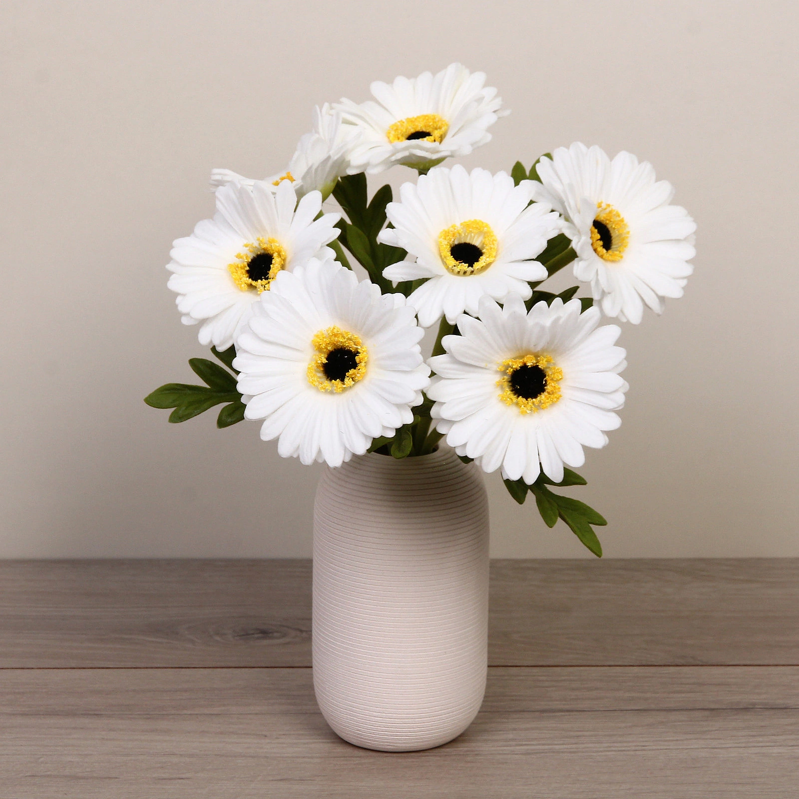 Букет из семи белых гербер подарит вашему интерьеру свежесть и яркие акценты без необходимости постоянного ухода. Эти цветы выглядят настолько реалистично, что создают полное ощущение живого букета, сохраняя свою красоту на долгие годы. Идеальное решение для тех, кто ценит эстетику, но не имеет времени на уход за живыми растениями.