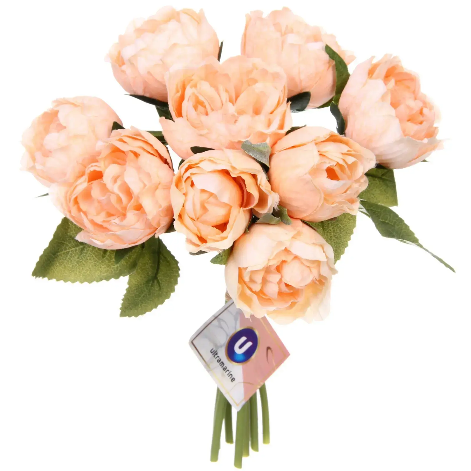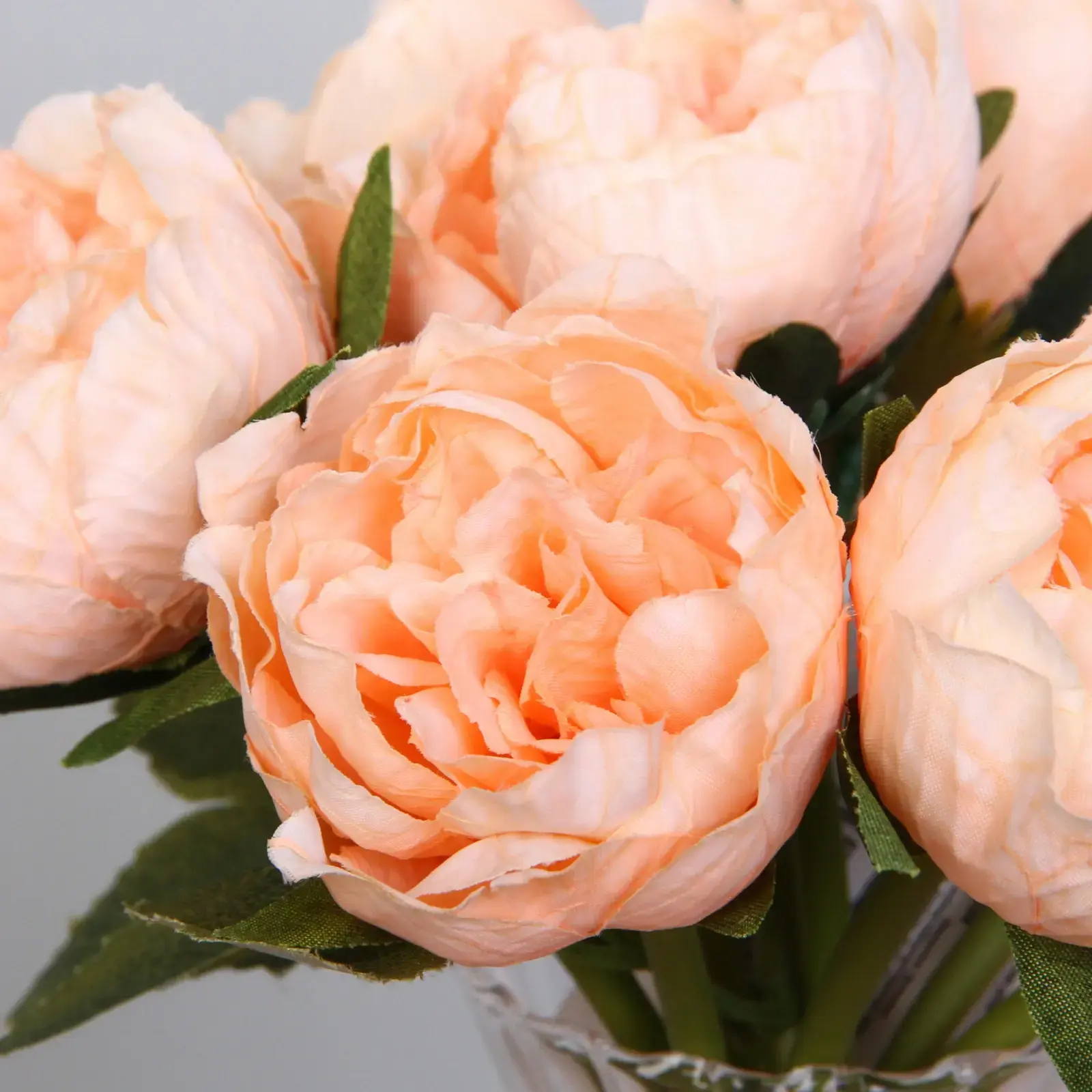 Цветы выполнены из высококачественного пластика и полиэстера, что обеспечивает их долговечность и устойчивость к внешним воздействиям. Персиковый оттенок добавляет нежности и романтики в любой интерьер. Букет аккуратно собран и прочно прикреплён к основанию, что гарантирует его стабильность и привлекательный внешний вид.