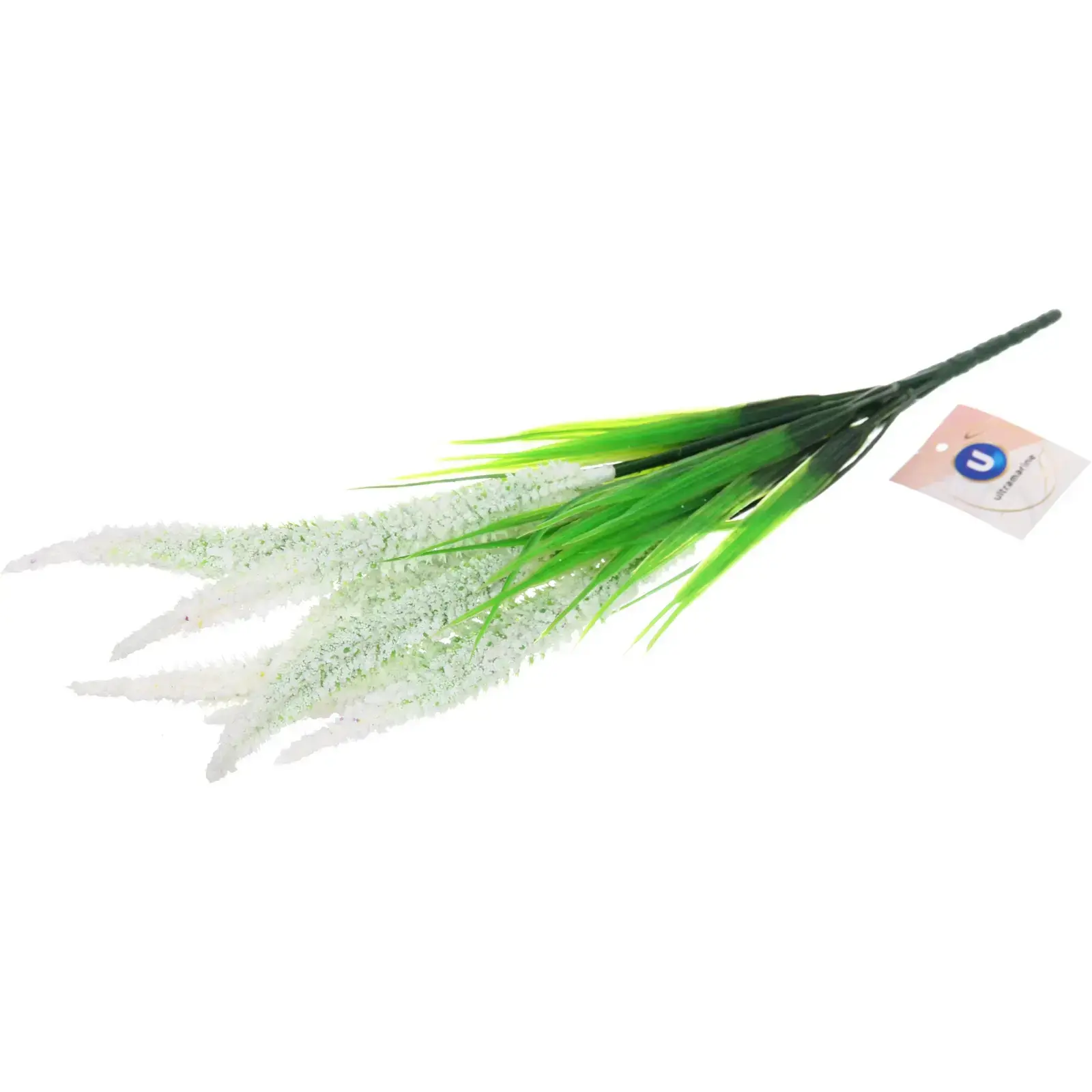Цветок выполнен из качественного ПВХ и пластика, что обеспечивает его долговечность и легкость. Белый цвет соцветий и ярко-зеленые листья создают гармоничное сочетание, которое будет прекрасно смотреться в любом интерьере. Размер цветка составляет 40 см, что делает его универсальным для различных стилей оформления.