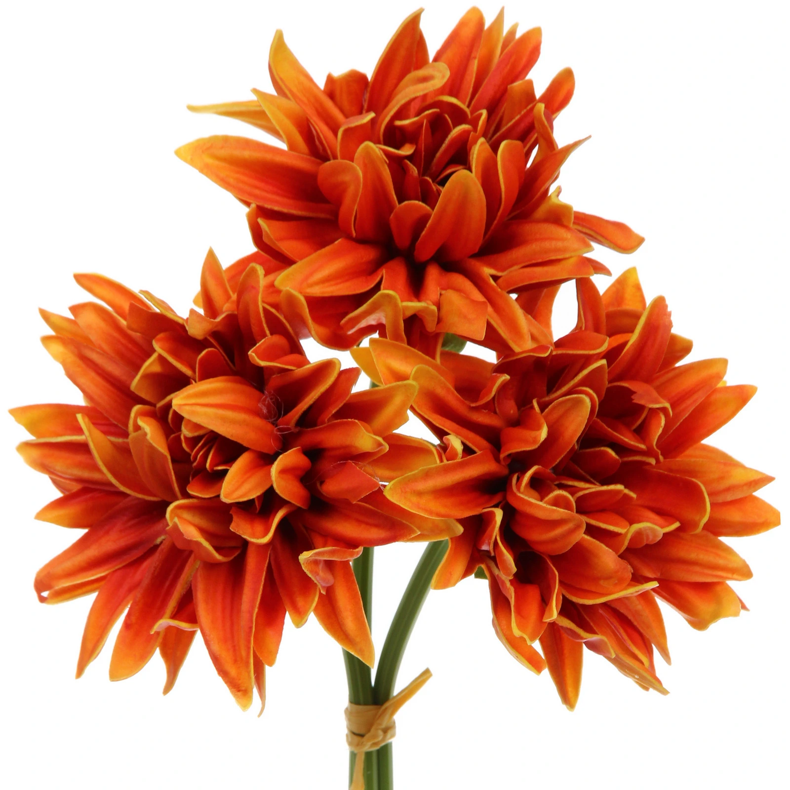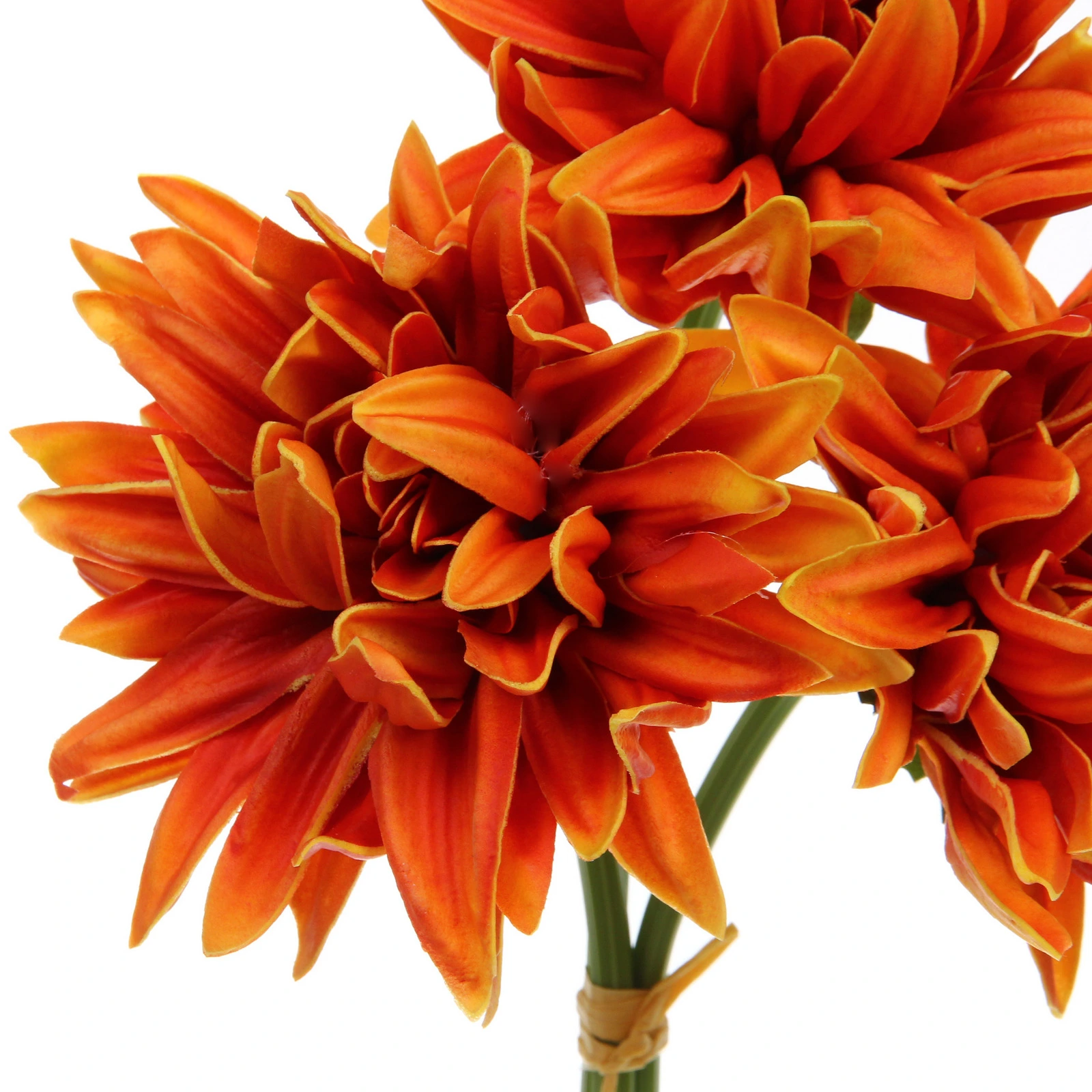 - Реалистичный внешний вид: Лепестки искусно воспроизводят текстуру и форму живых хризантем, включая тонкую жёлтую окантовку по краям и плавные цветовые переходы от тёмного к светлому оранжевому.