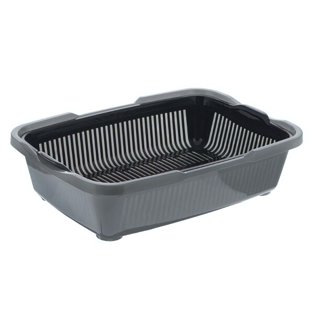 Туалет для кошек большой с сеткой, серебро-черный, размер 46х39х13см