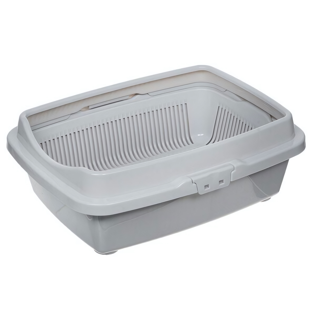 Туалет для кошек полная комплектация, светло-серый, пластик, размеры под стандартный наполнитель