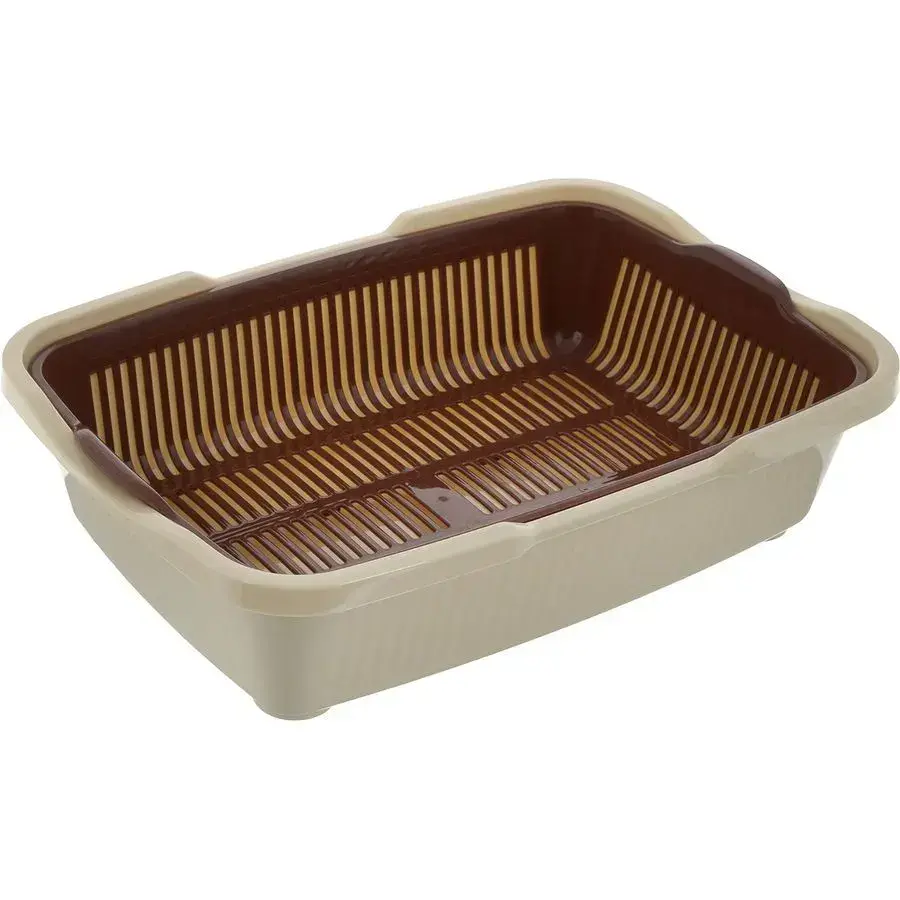 Подарите своему питомцу комфорт, а себе — простоту уборки! Этот гигиеничный лоток со съемной сеткой создан для легкого поддержания чистоты. Конструкция продумана до мелочей: прочный пластиковый корпус молочного цвета сочетается с темно-коричневой сеткой, обеспечивая не только функциональность, но и эстетичный внешний вид.