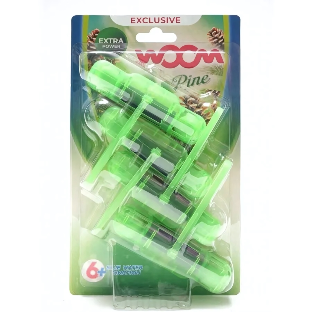 Туалетные блоки для унитаза woom 6 в 1 с ароматом сосны помогают поддерживать ощущение свежести и аккуратности в ванной комнате каждый день. Формула действует при каждом смывании, обеспечивая чистоту чаши и приятный хвойный аромат, который ассоциируется с ощущением свежего воздуха.