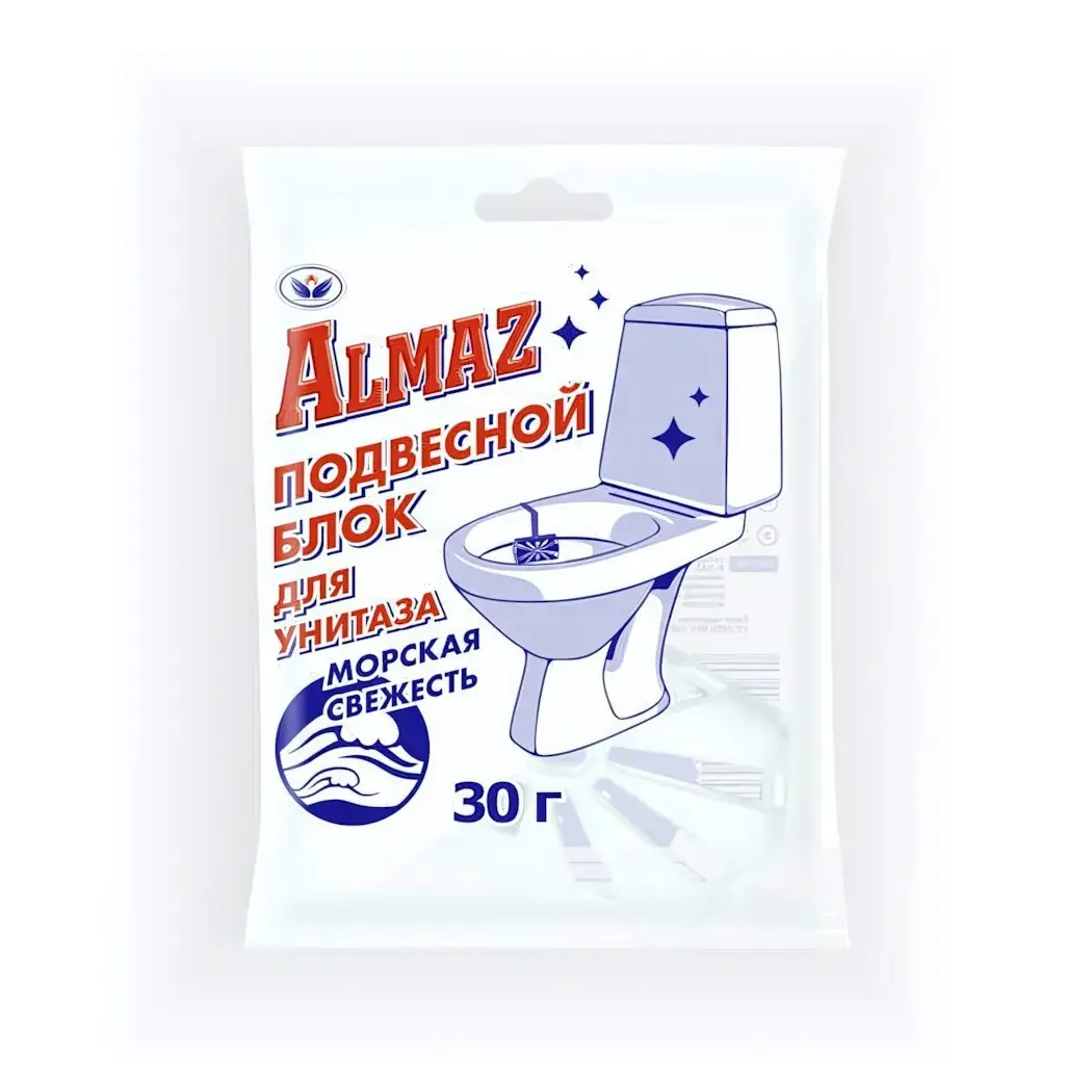 Обеспечьте своему туалету чистоту и свежесть с помощью подвесного туалетного блока ALMAZ. Этот продукт не только эффективно освежает воздух, но и придаёт вашему унитазу блеск. Благодаря уникальному аромату морской свежести, вы сможете наслаждаться чистотой и комфортом в вашем доме.