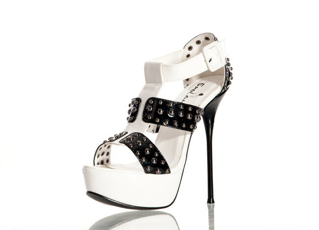 Эти бело-черные лакированные туфли с заклепками — идеальный выбор для тех, кто ценит комфорт и стиль. Высокий каблук в 14 см и платформа 4 см обеспечивают не только элегантный вид, но и удобство при носке. Эти туфли подойдут для вечерних выходов, коктейльных вечеринок или романтических свиданий, добавляя вашему образу нотку шика и уверенности.