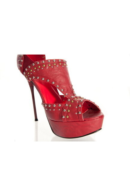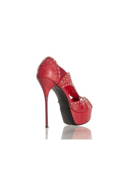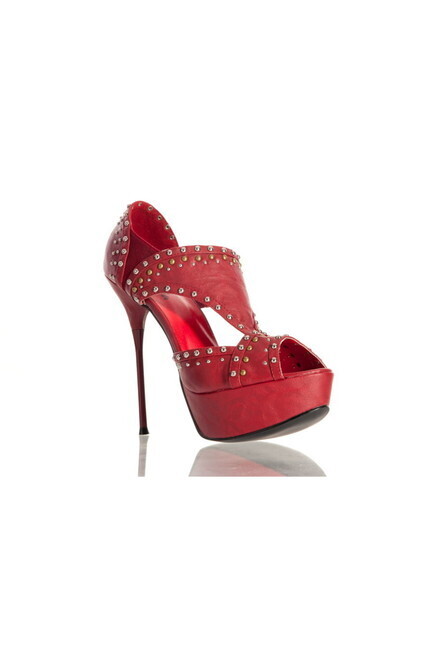 Туфли женские на каблуке 14 см с платформой, красные, размер 37, металлические заклепки