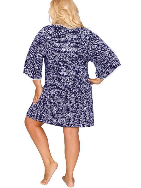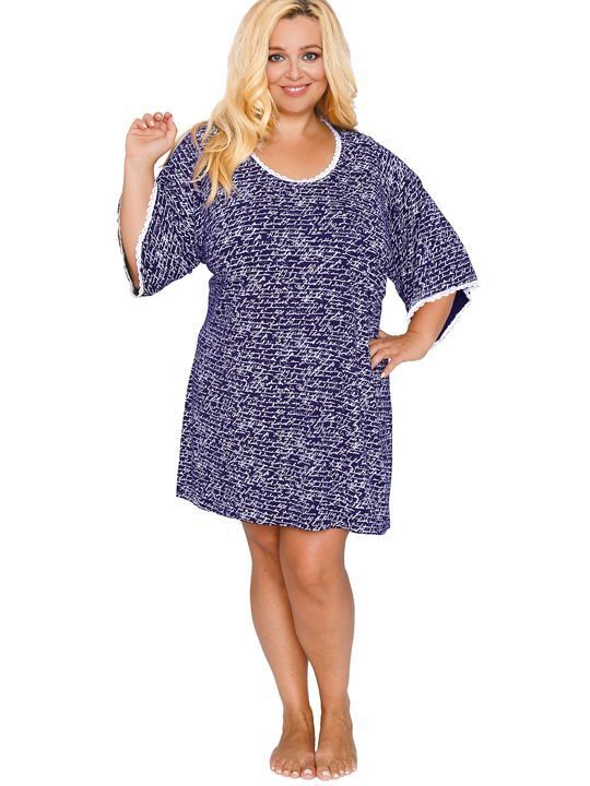 Эта туника с рукавом 3/4 станет вашим идеальным спутником для домашнего отдыха и прогулок. Изготовленная из легкого вискозного полотна, она обеспечивает максимальный комфорт в любое время года. Темно-синий цвет с белым принтом придаст вашему образу элегантность и стиль, а свободный крой позволит чувствовать себя непринужденно.