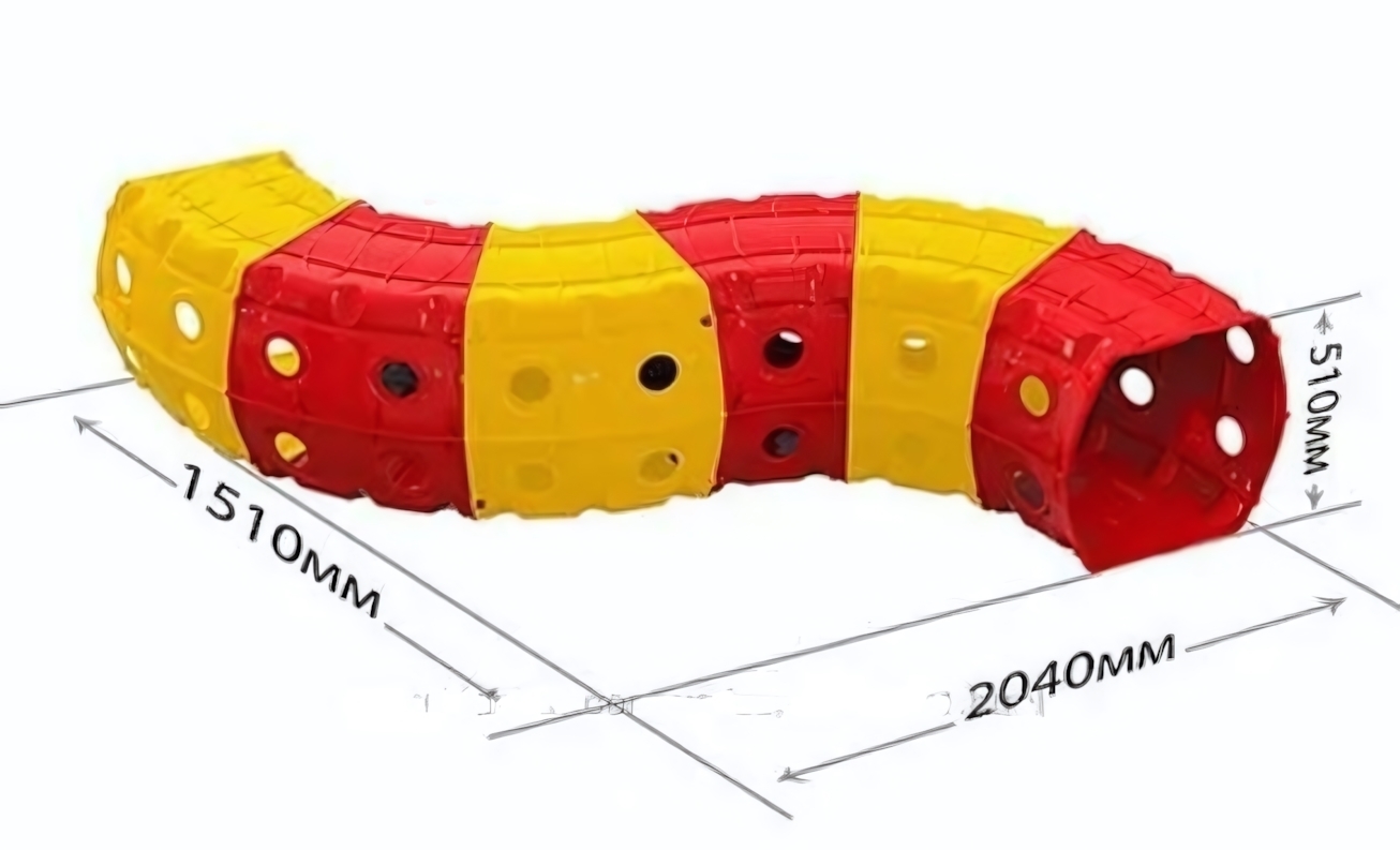 Туннель изготовлен из прочного, безопасного материала. Его гибкие секции можно складывать в разные конфигурации, превращая игру в новое приключение каждый день. Размеры: длина 204 см, ширина 151 см, высота 51 см. Яркие желтые и красные элементы не только радуют глаз, но и способствуют развитию цветовосприятия.