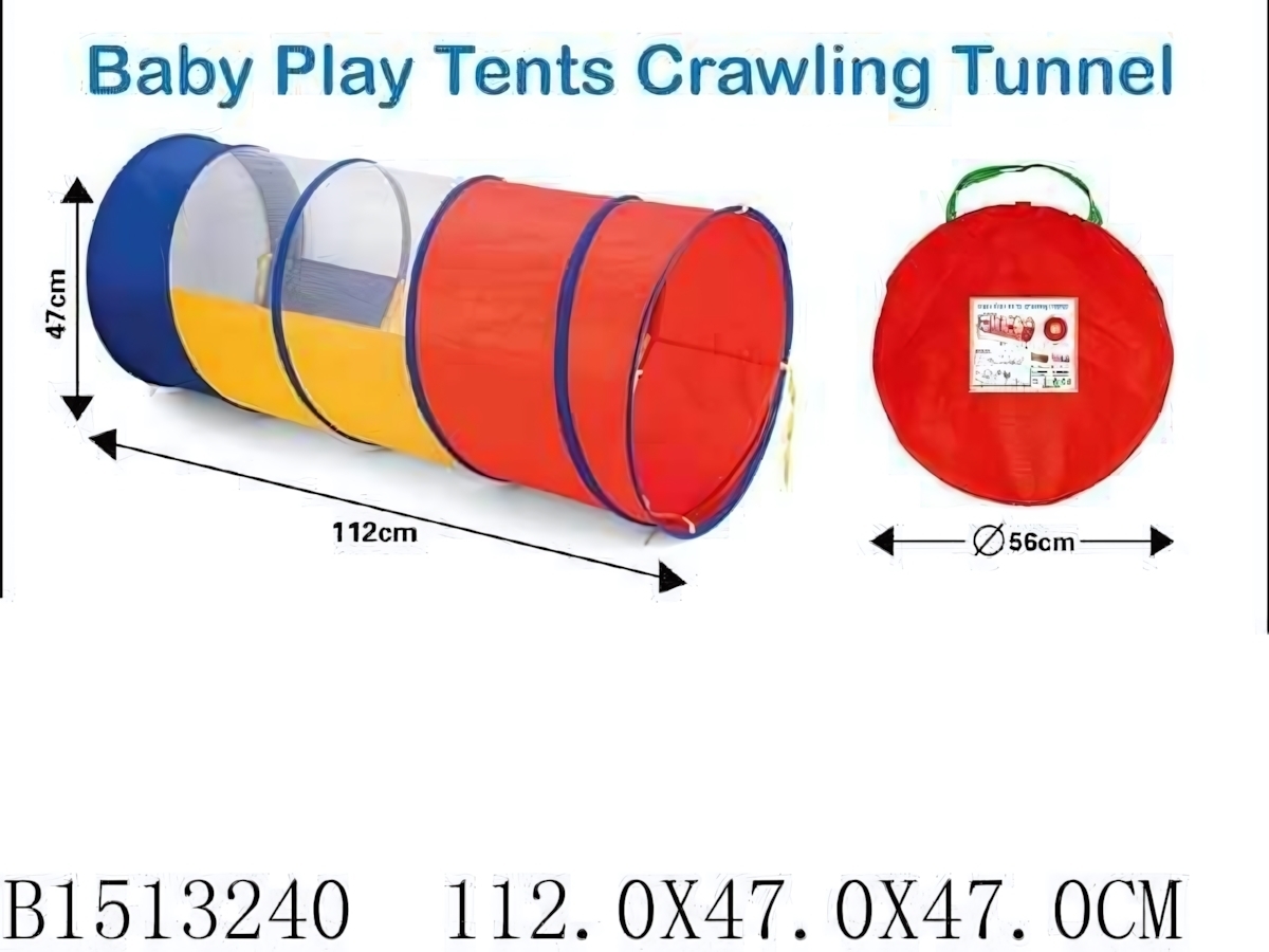 Игровой туннель для детей 112х47см, складной, яркие цвета (красный/синий/желтый), текстиль с каркасом