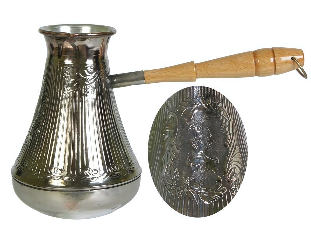 Медь — это отличный проводник тепла, что позволяет кофе готовиться равномерно и быстро. Декоративные рельефные узоры на поверхности придают турке уникальный вид, а гладкая обработка делает ее легкой в уходе. Вы сможете наслаждаться не только вкусом, но и эстетикой.