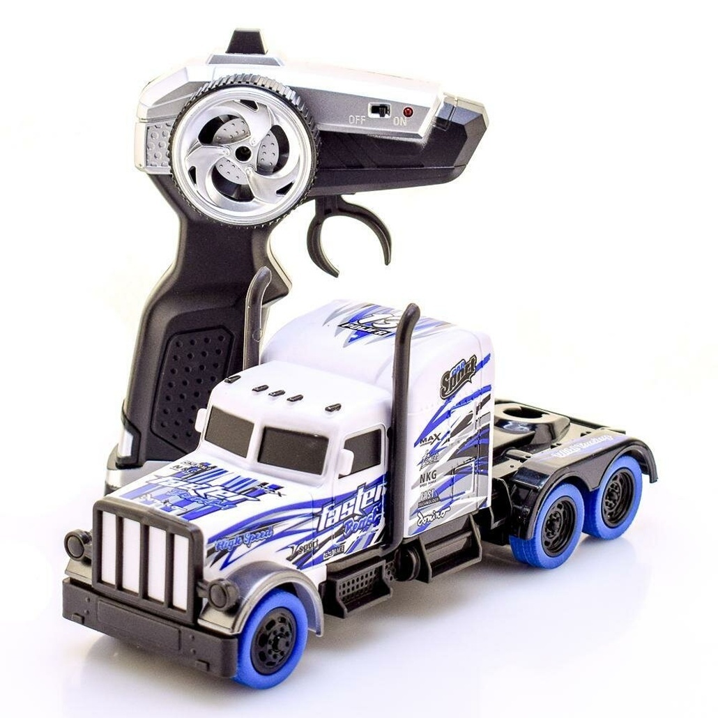Управляйте тягачом с помощью профессионального пульта управления, который входит в комплект. Машинка работает от встроенного аккумулятора 4.8V, зарядное устройство также прилагается.